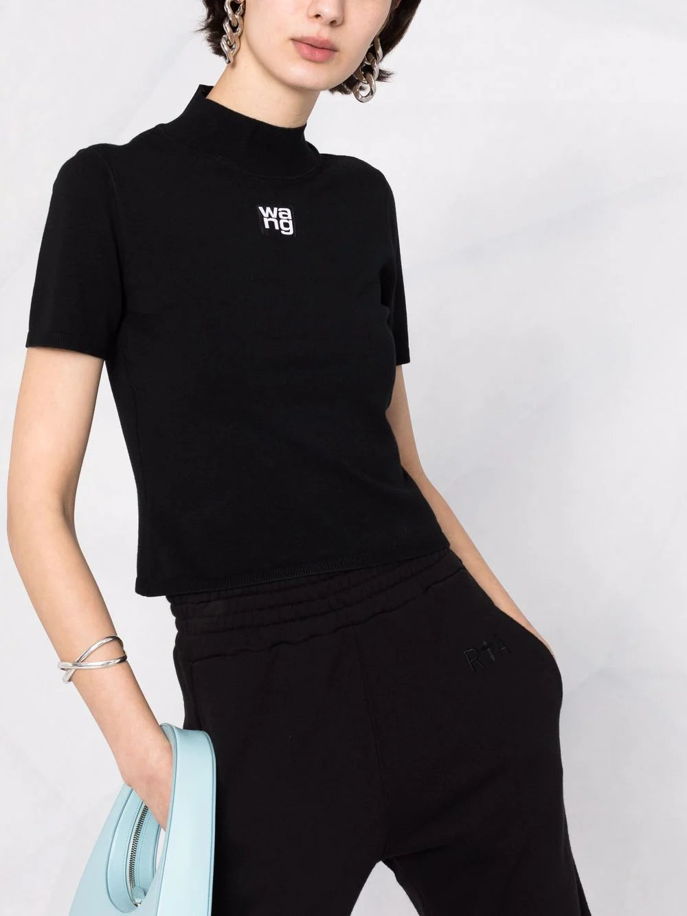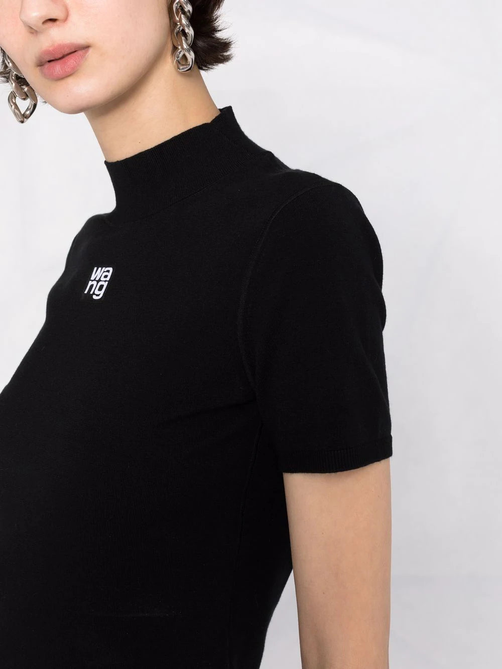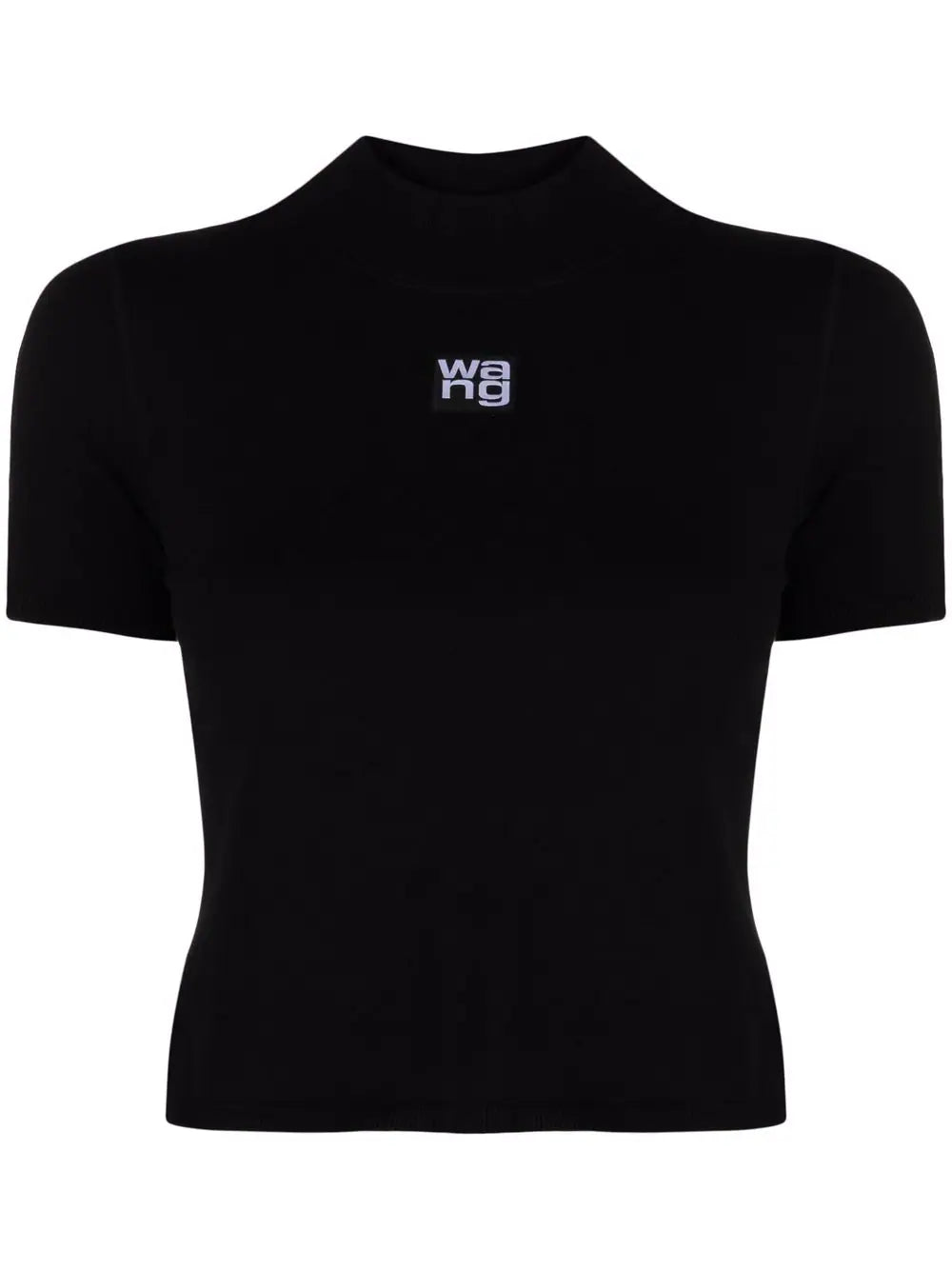 ALEXANDER WANG DAMEN Hochgeschlossenes Logo-Top Schwarz