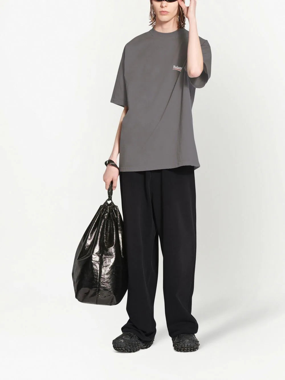BALENCIAGA UNISEX T-Shirt mit politischem Logo, Grau
