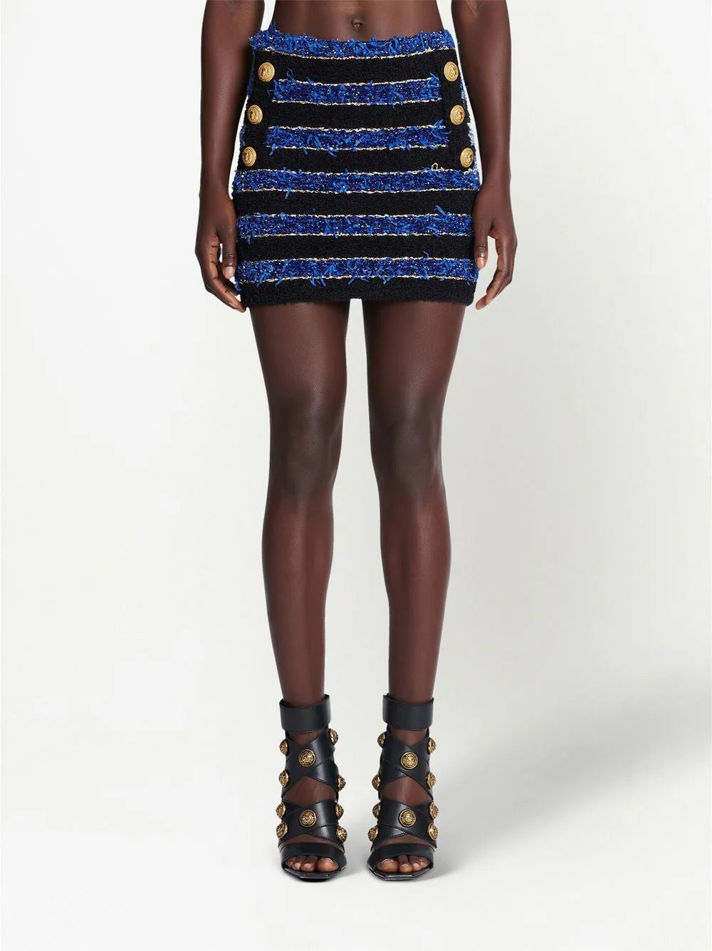 BALMAIN DAMEN Tweedrock mit Knopfdetail Blau Schwarz Gold