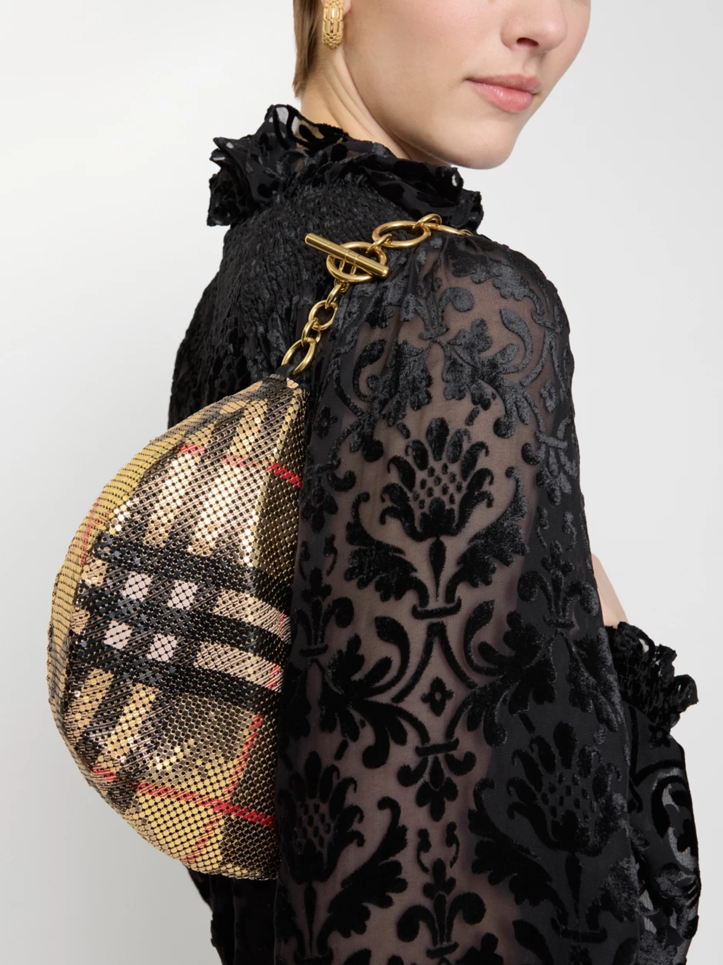 - A softly structured bag made in Italy from metallic mesh printed with the Burberry Check in signature sand beige. The mini shape is lined in suede and features a chunky chain-link strap looped with a T-bar fastening to create our signature ‘b’.