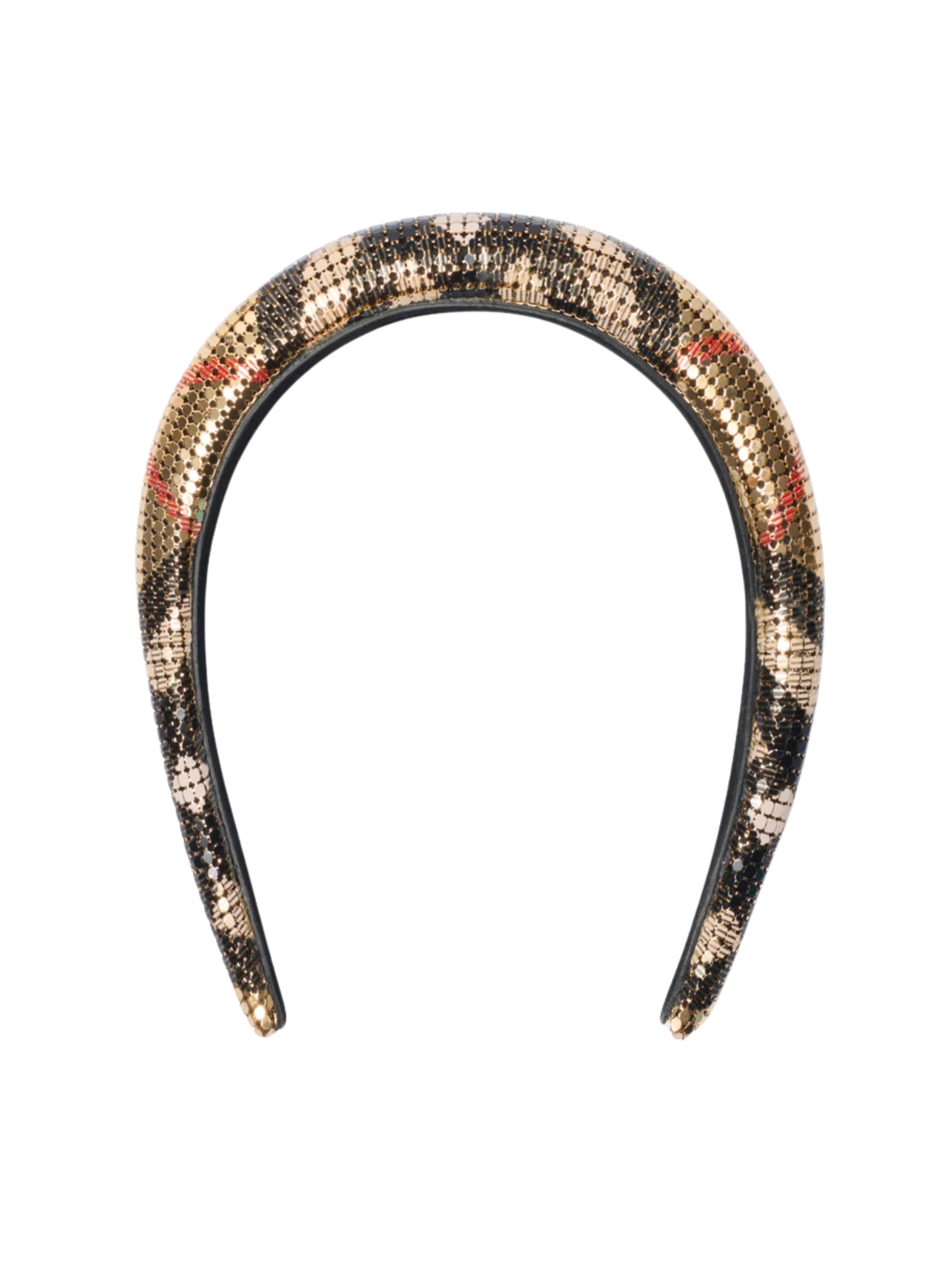- A headband made in Italy from metallic mesh printed with the Burberry Check. The design is lined with soft suede.