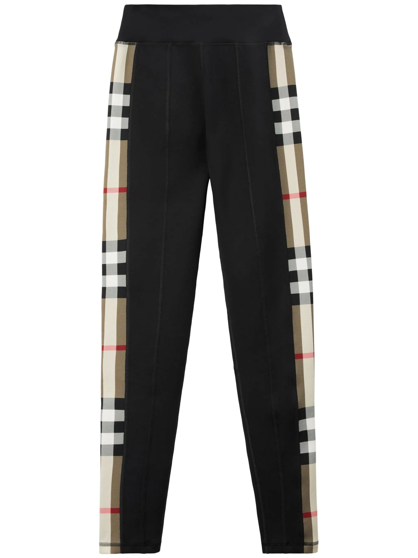 BURBERRY WOMEN Check Trim Stretch Jersey Leggings Black