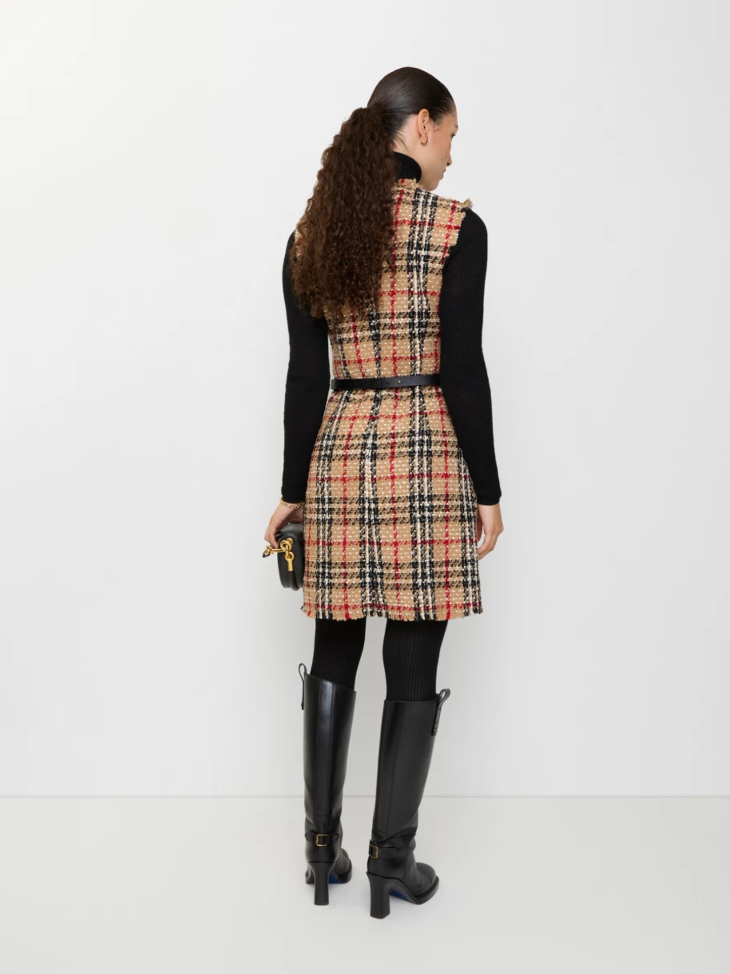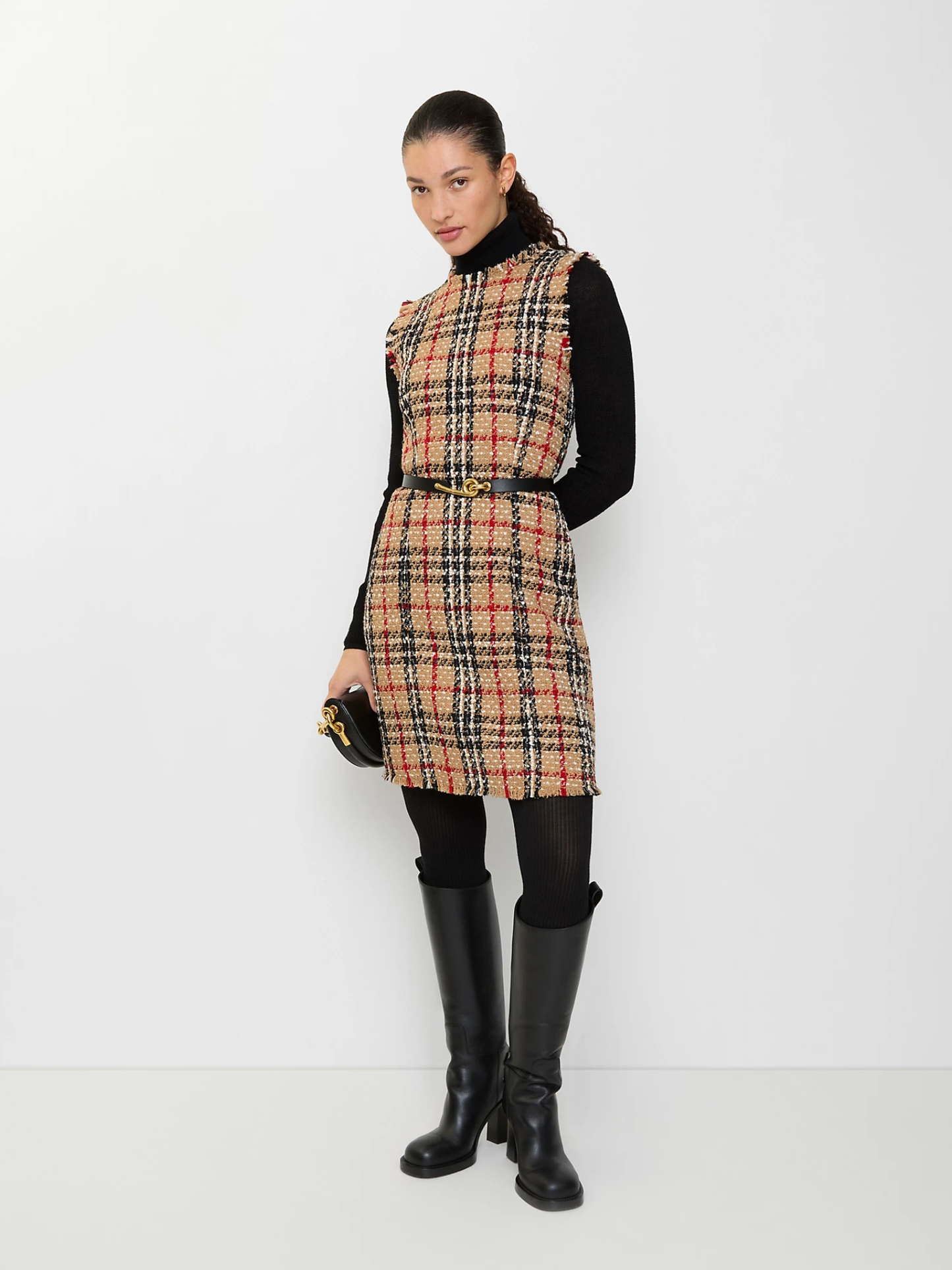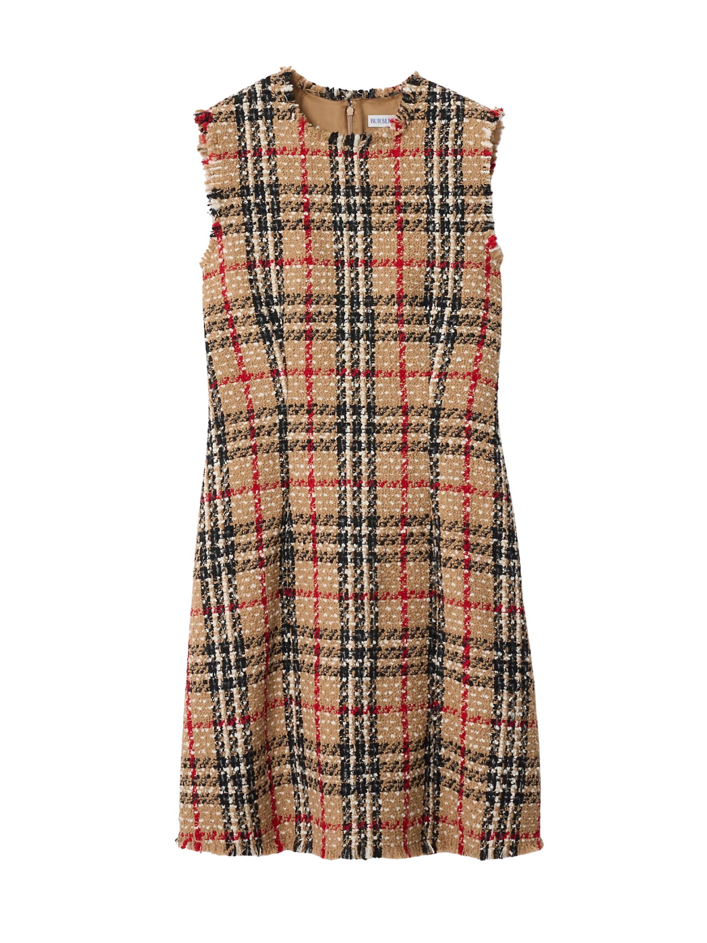 BURBERRY WOMEN Check Wool Blend Bouclé Dress Sand Beige