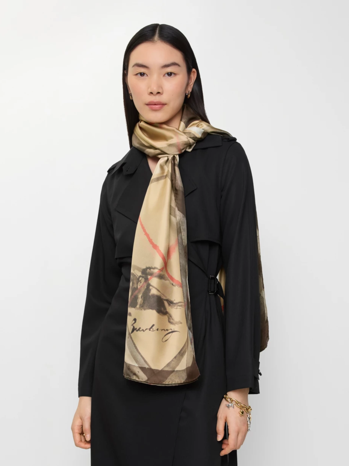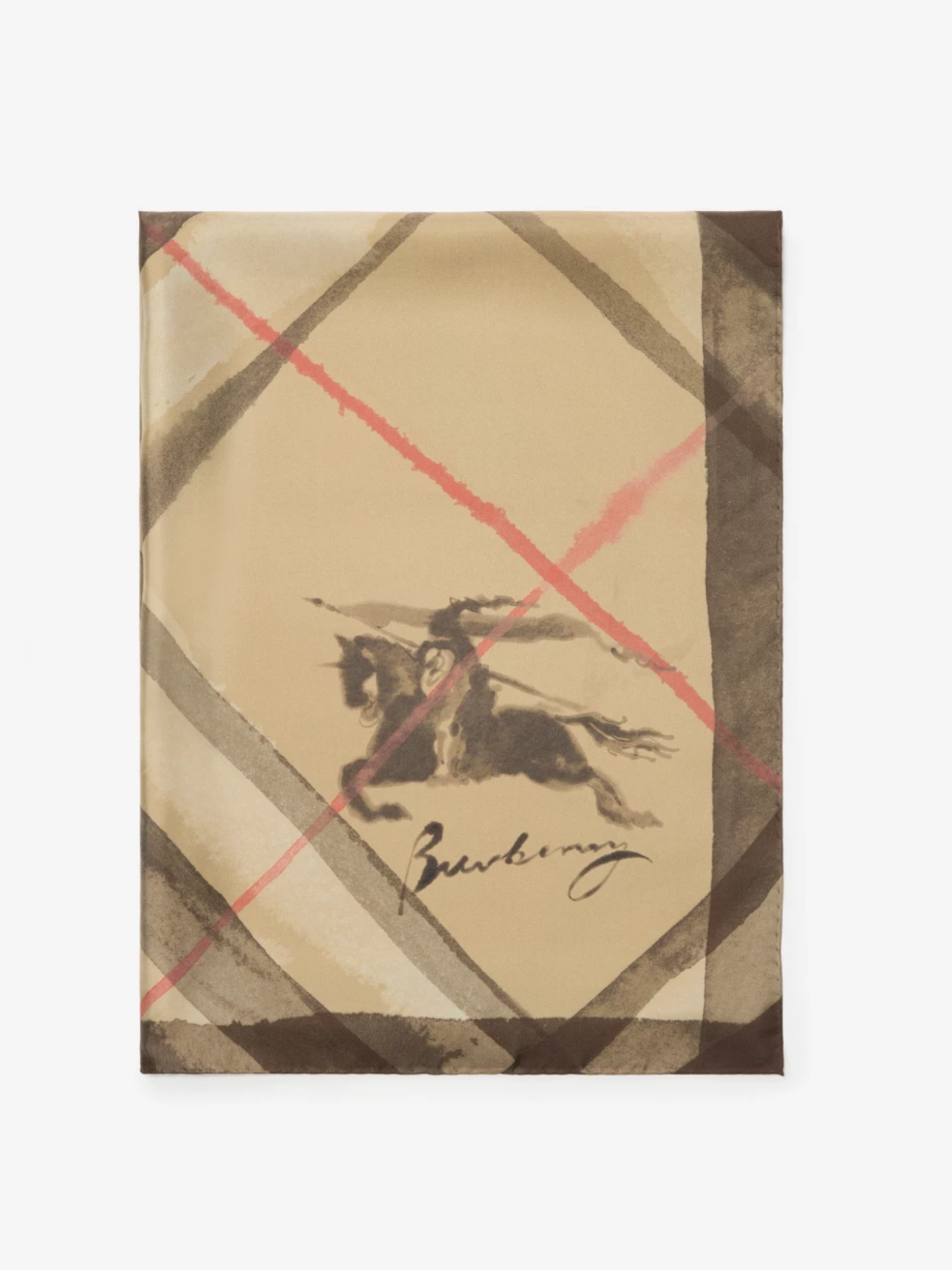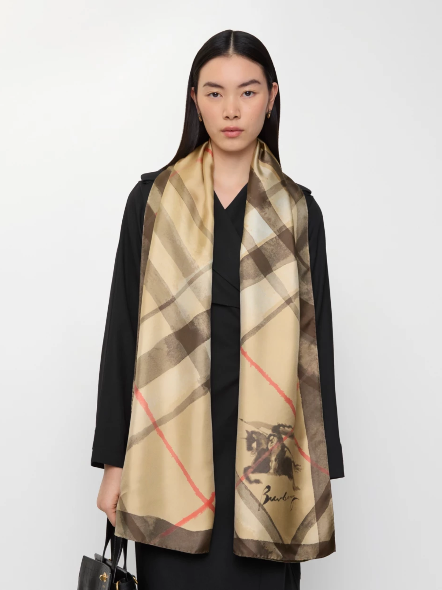 BURBERRY WOMEN Wide Watercolour Check Silk Scarf Sand Beige