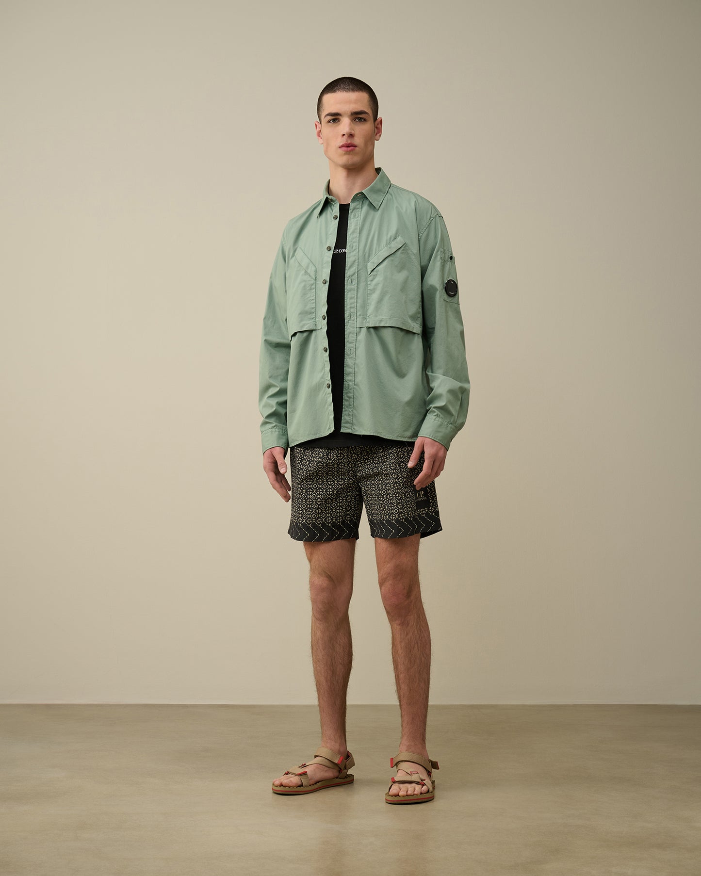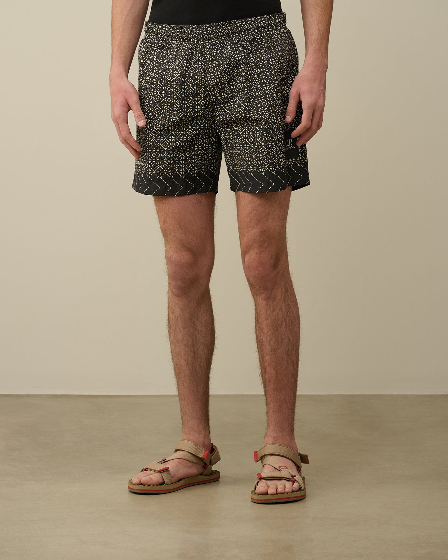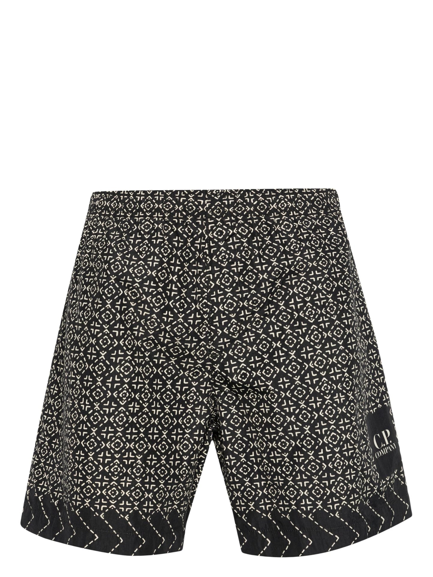 CP COMPANY Badeshorts mit geometrischem Print Schwarz/Milchweiß