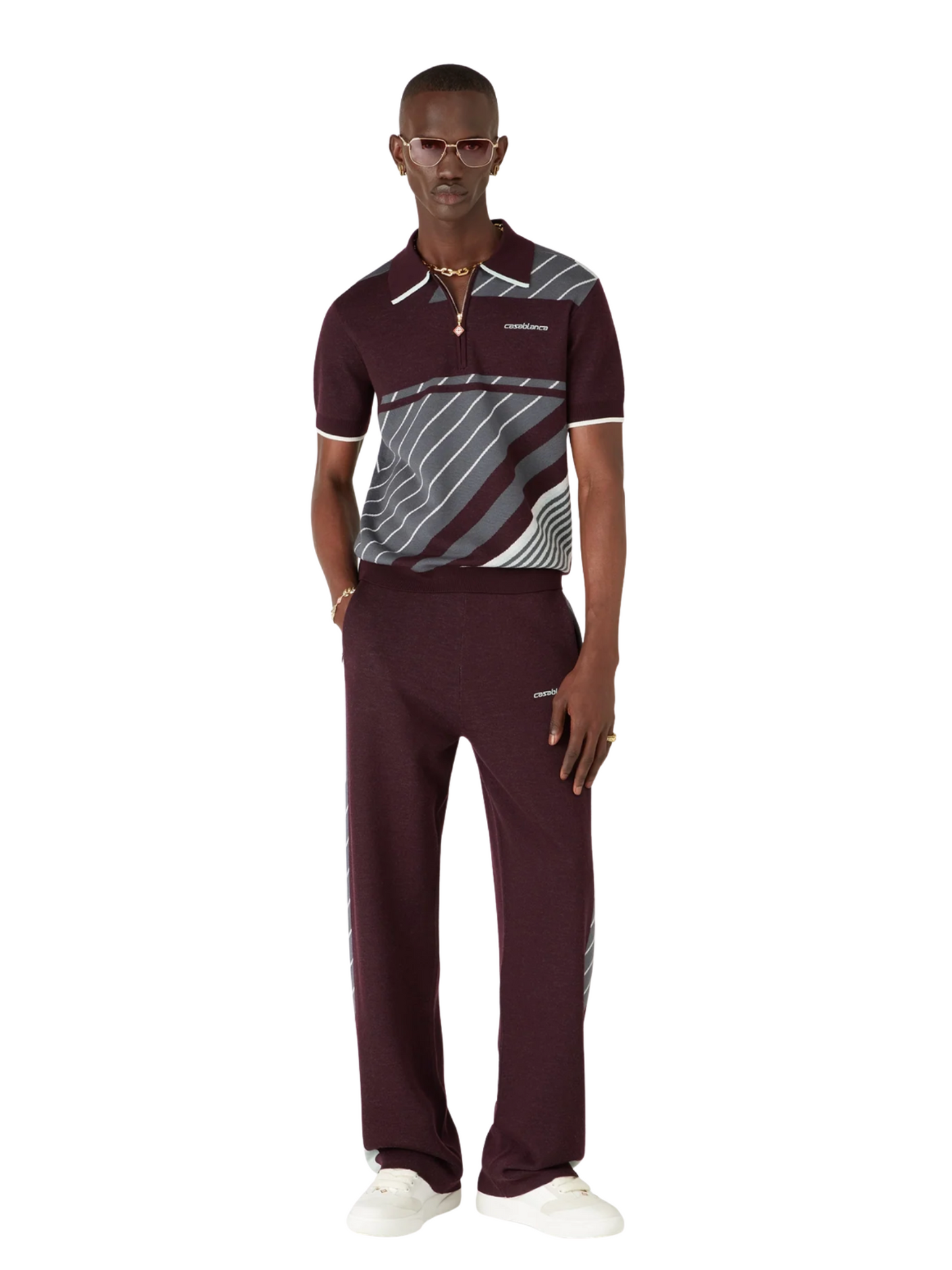 CASABLANCA Merino Diagonal Tennis Trousers Burgundy
