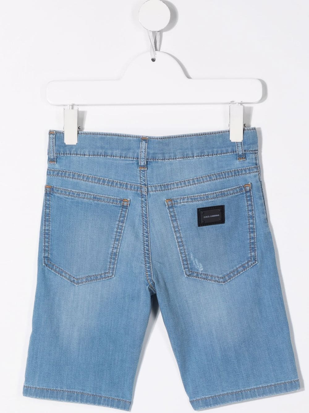 Hellblaue Jeansshorts aus Baumwolle mit Logo-Patch von DOLCE & GABBANA KIDS mit Logo-Patch auf der Rückseite, Gürtelschlaufen, Knopf- und Reißverschluss vorne und klassischen fünf Taschen.