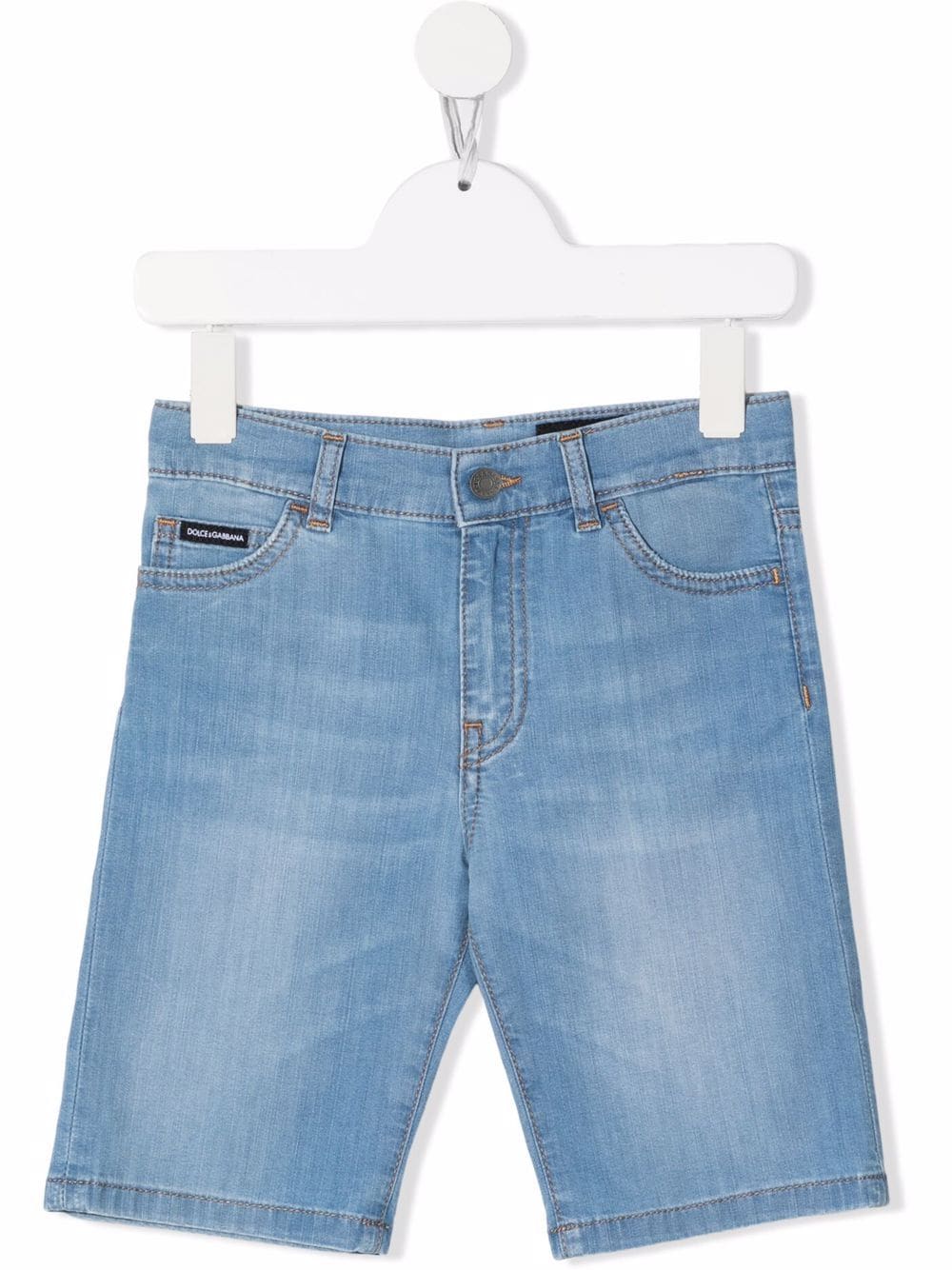 DOLCE & GABBANA KIDS Jeansshorts mit Logo-Patch Blau