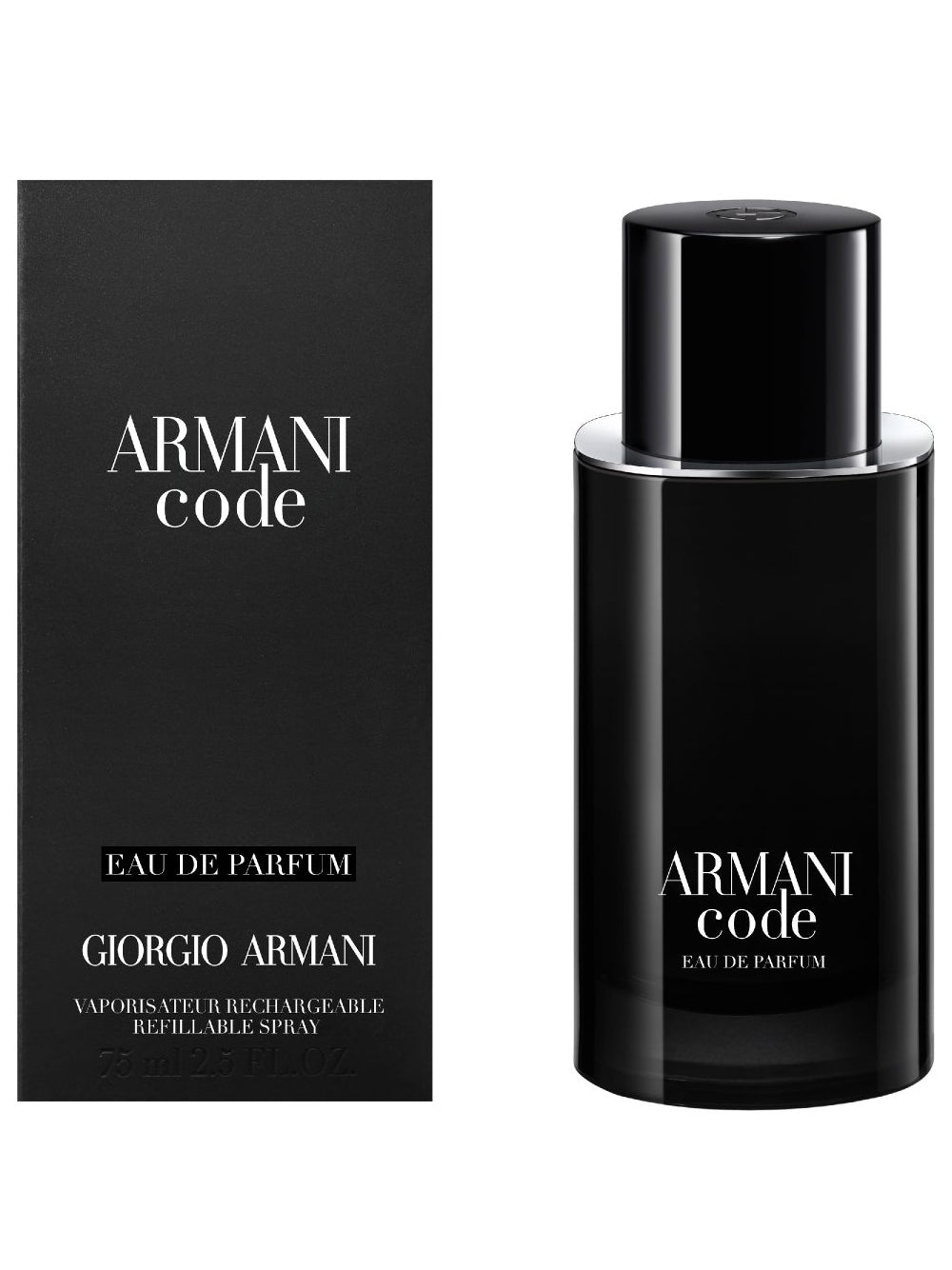 Der neue Armani Code Eau de Parfum Flakon interpretiert den legendären Original-Code Eau de Parfum Flakon neu. Er unterstreicht Giorgio Armanis Umweltbewusstsein. In seiner eleganten, markanten schwarzen Form, veredelt durch sinnliche Akzente und silberne Akzente, ist der Flakon ein wunderschönes Objekt.