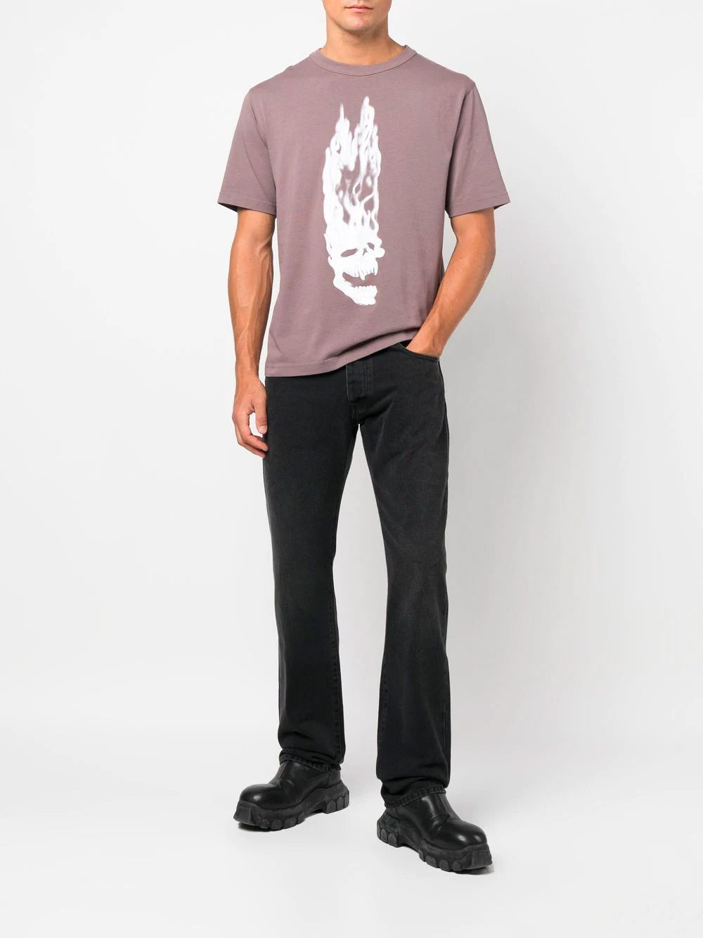 T-Shirt mit flammendem Totenkopf