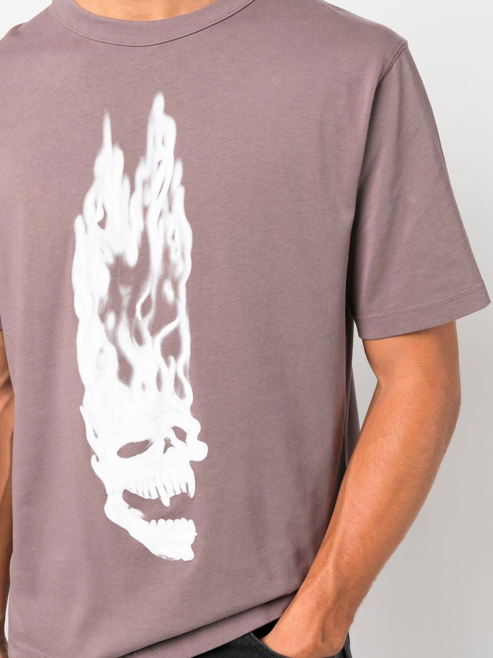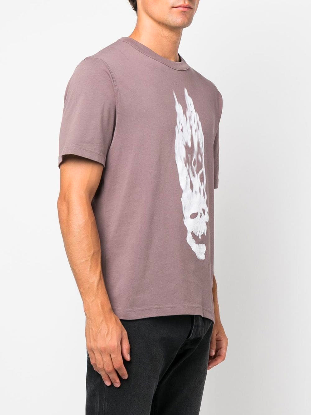 HERON PRESTON T-Shirt mit flammendem Totenkopf-Motiv, Grau