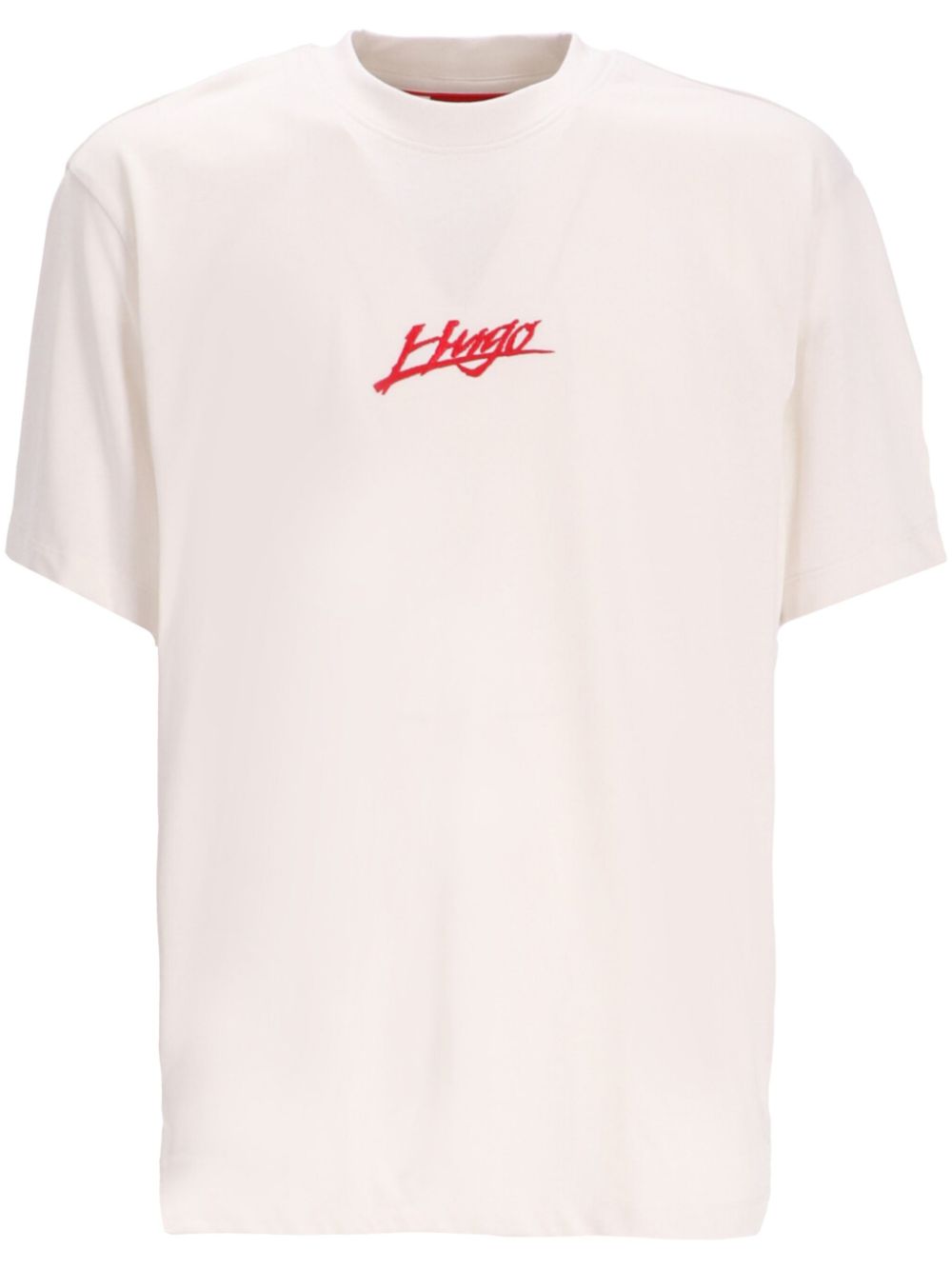 HUGO Dlogotee Logo-besticktes Baumwoll-T-Shirt Natur