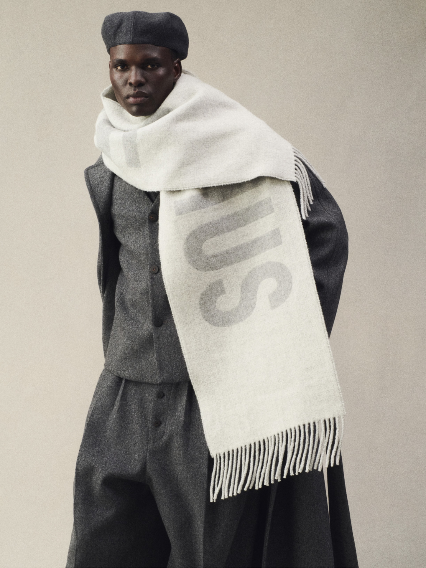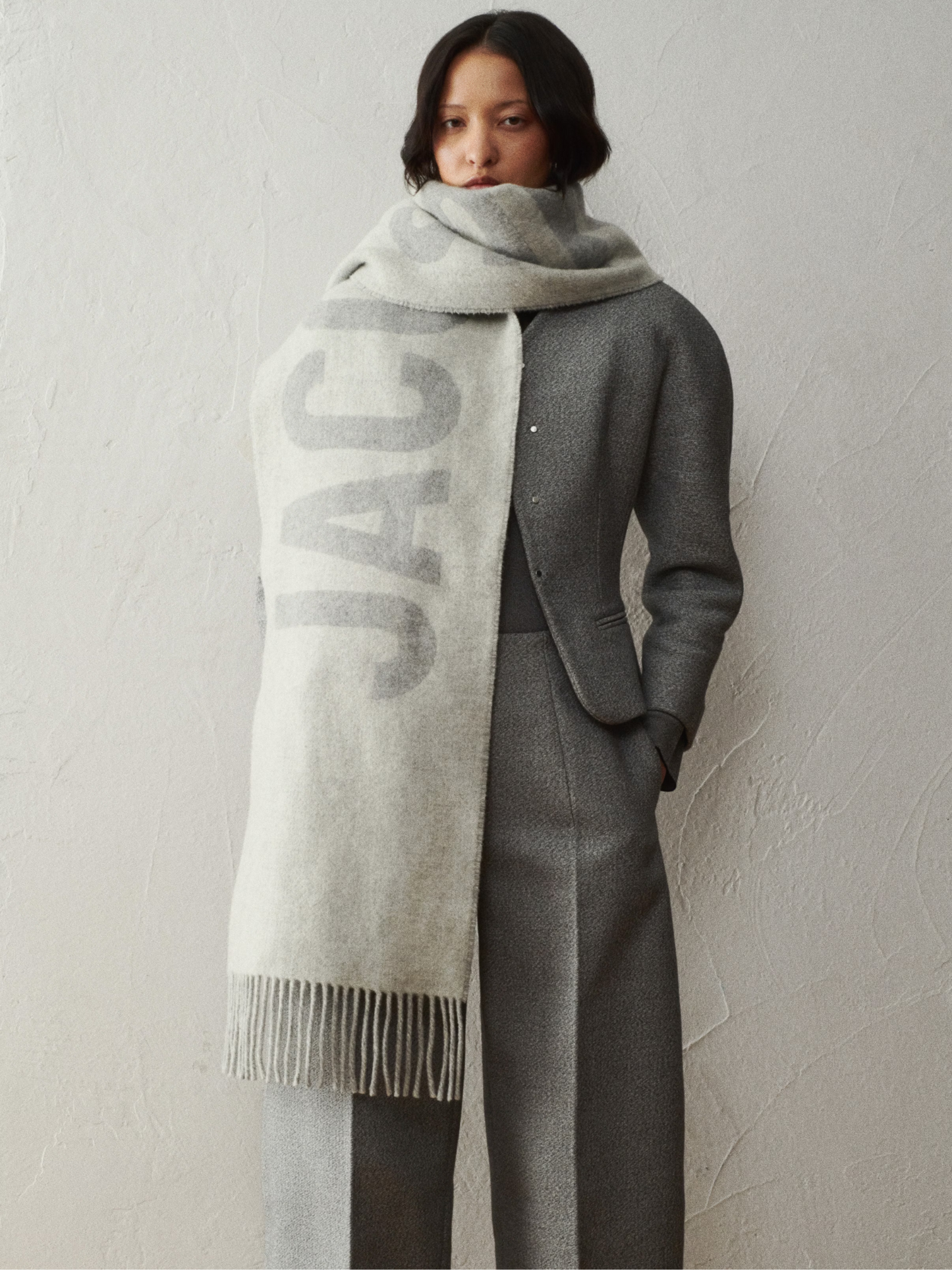 JACQUEMUS Fringe Logo Scarf Grey