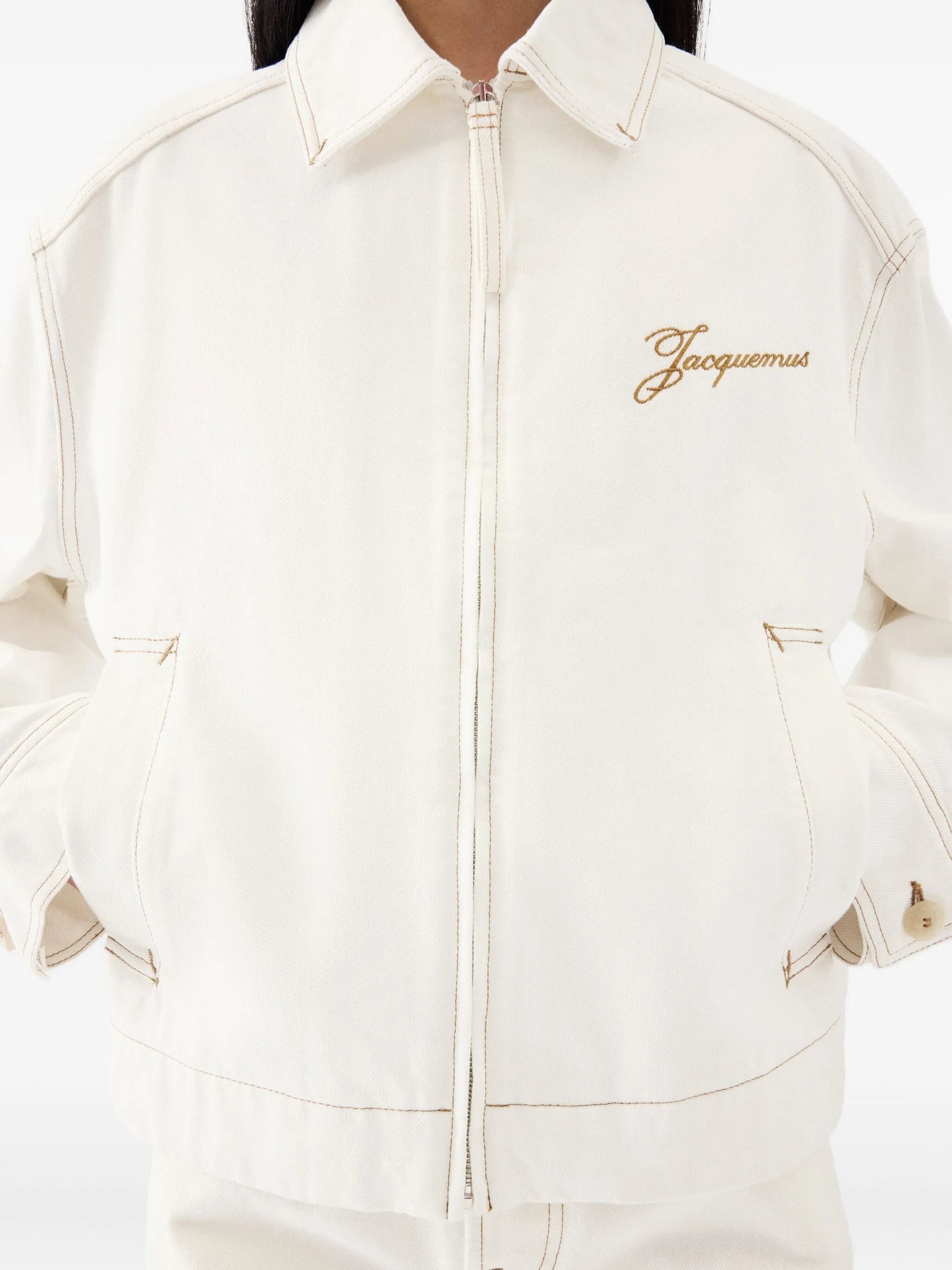 JACQUEMUS WOMEN Zipped Denim Jacket Off-White/Tabac