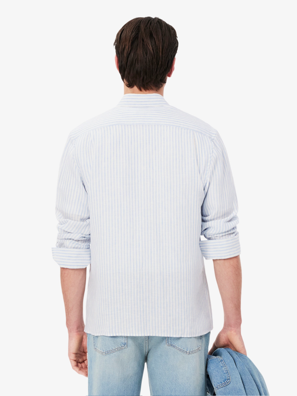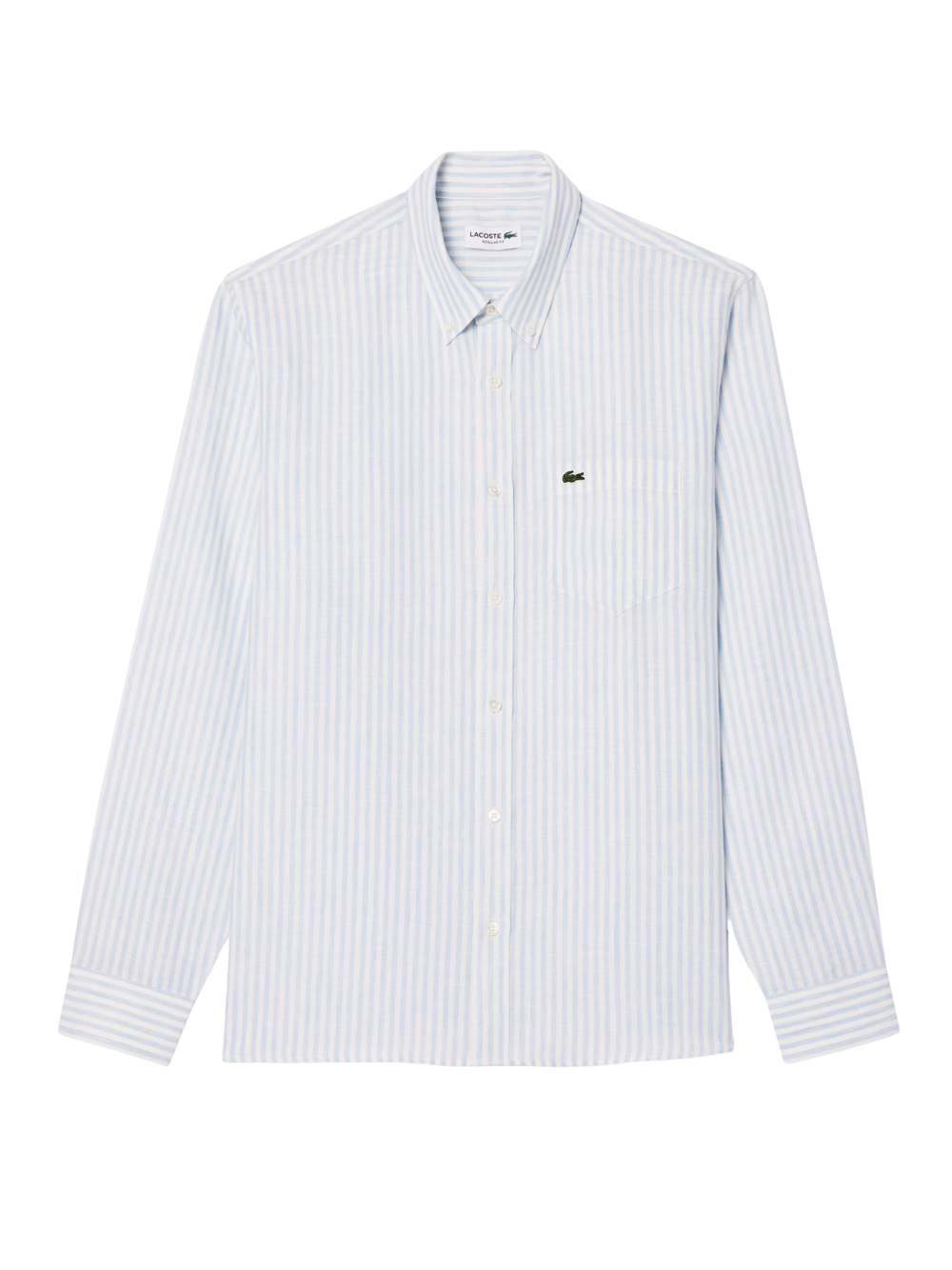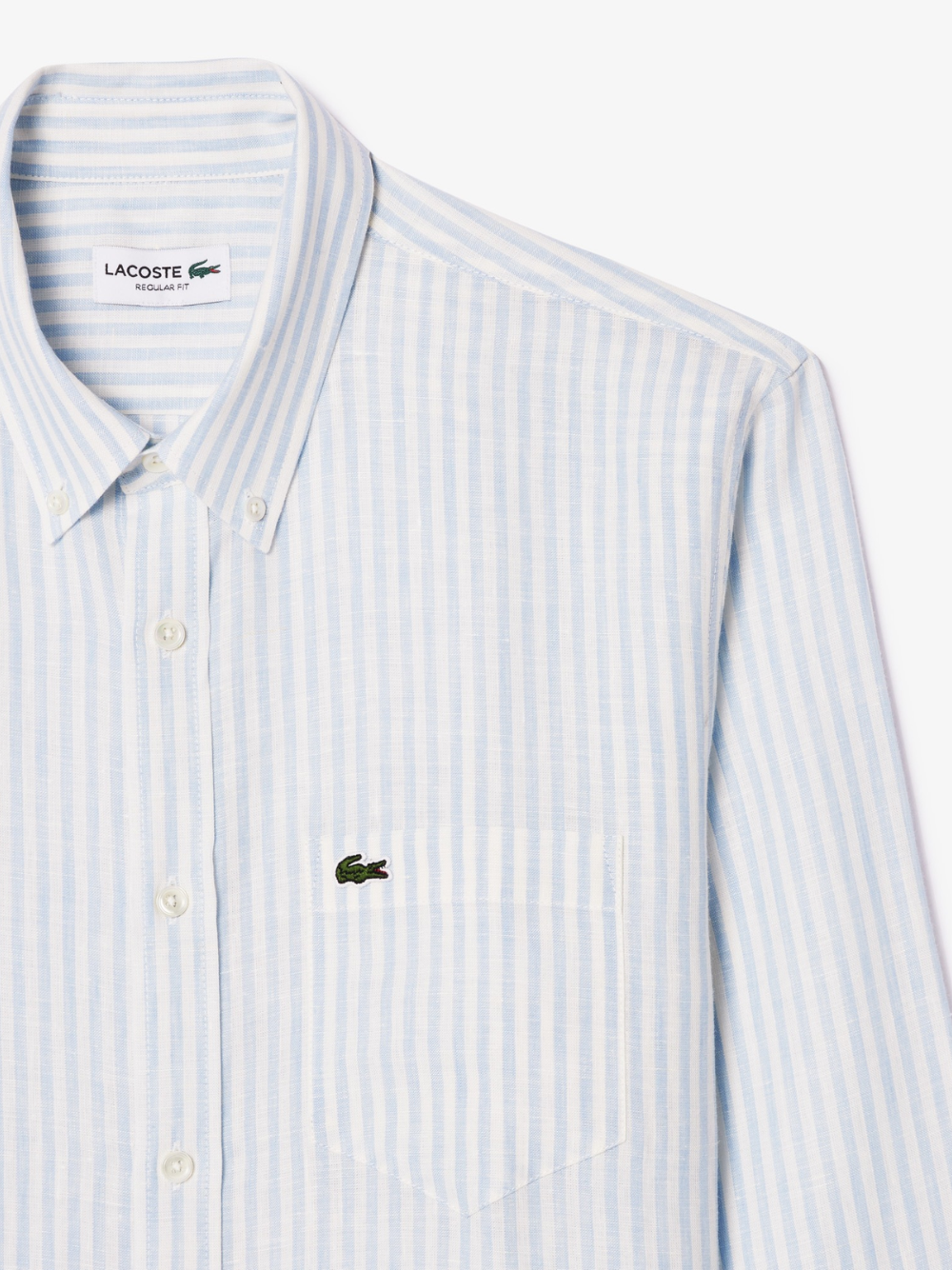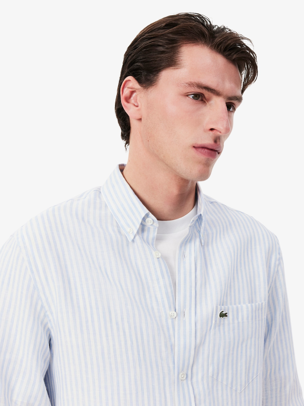 LACOSTE Regular Fit Striped Linen Shirt White/Blue