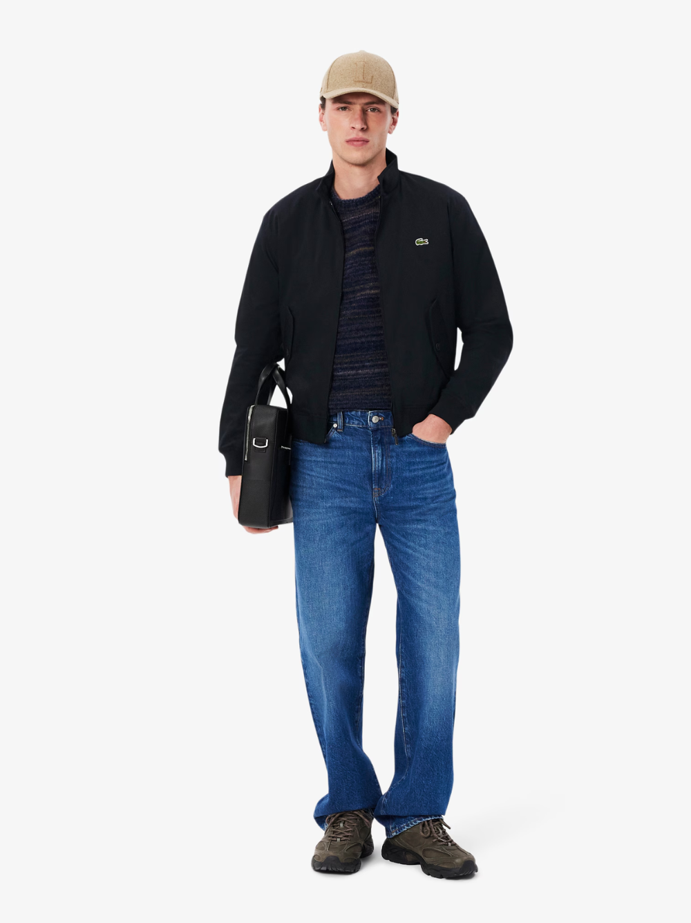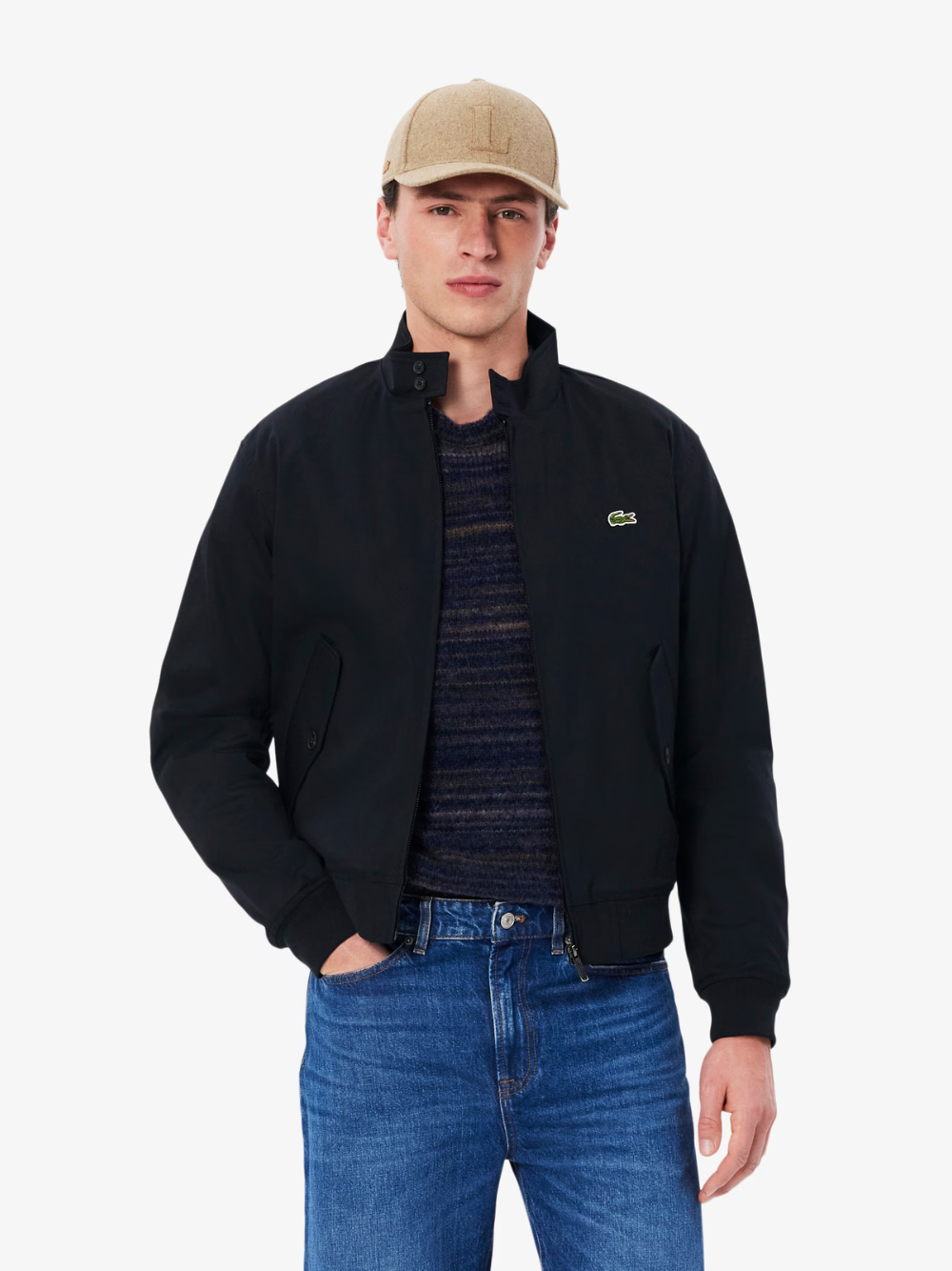 LACOSTE Water-Repellent Twill Harrington Jacket Navy