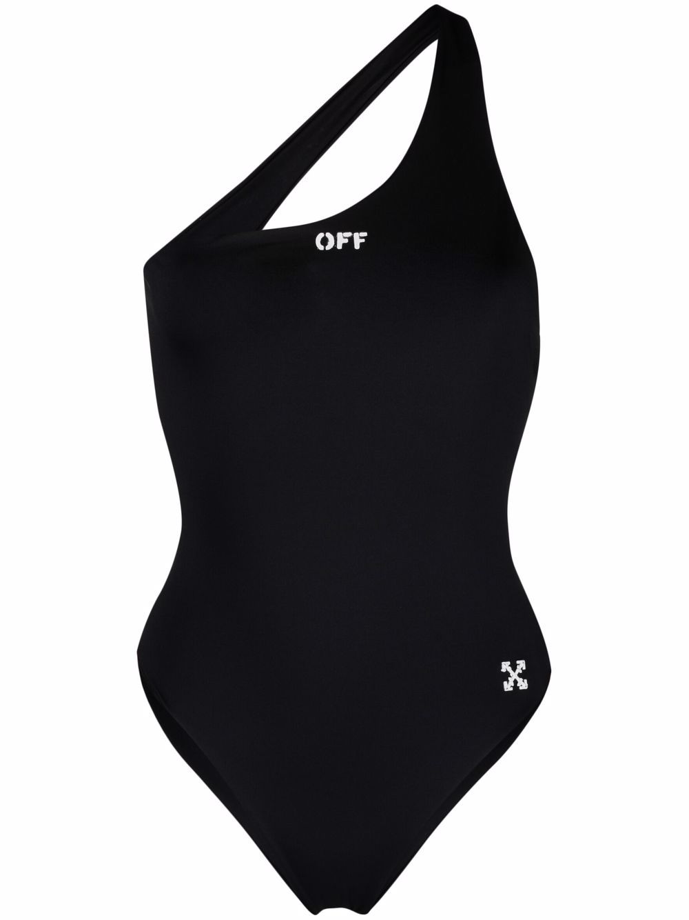 OFF-WHITE DAMEN Arrow Plaque One-Shoulder-Badeanzug Schwarz