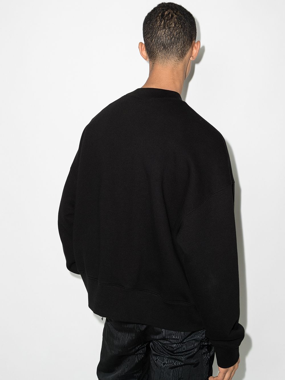 schwarze Baumwolle Bärenmotiv Rundhalsausschnitt Überschnittene Schultern Lange Ärmel Gerader Saum Gerippte Kante