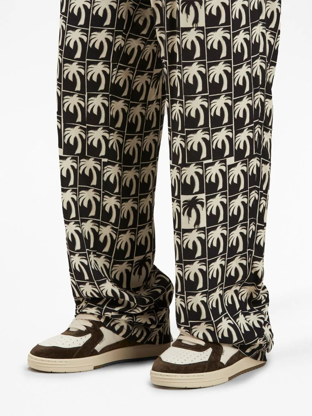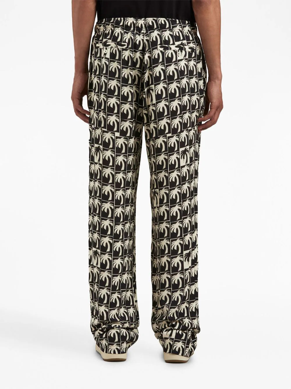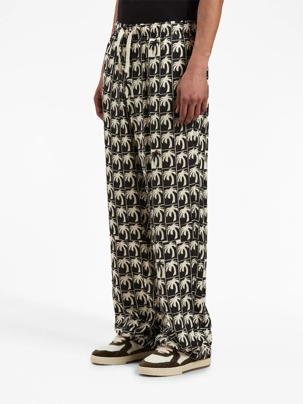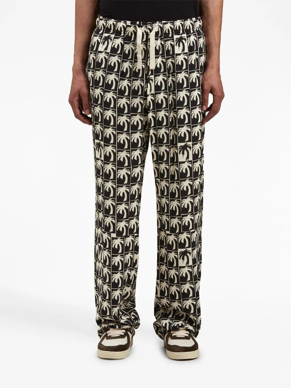 Das Palmensymbol, ein erkennbares Palm-Angels-Motiv, prägt die AW23-Kollektion der Marke. Es erscheint hier in einem sich wiederholenden Muster auf dieser schwarz-weißen Hose und verleiht ihr so ein unverwechselbares Finish.