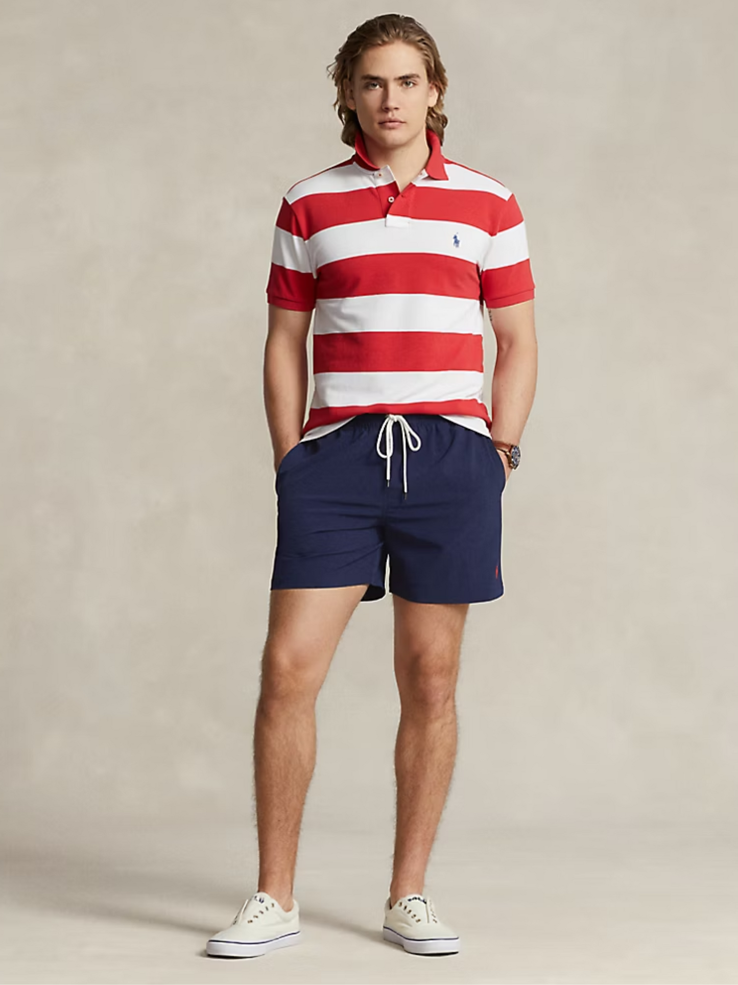 RALPH LAUREN – Badeshorts mit Polo-Pony-Stickerei, Marineblau