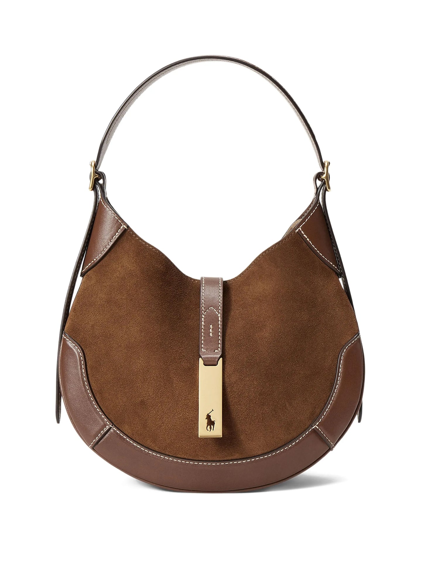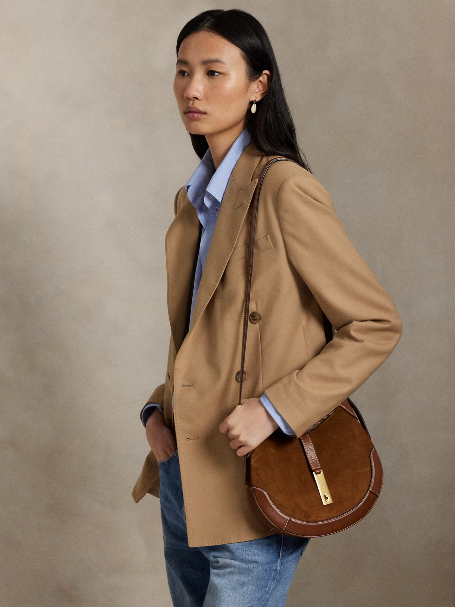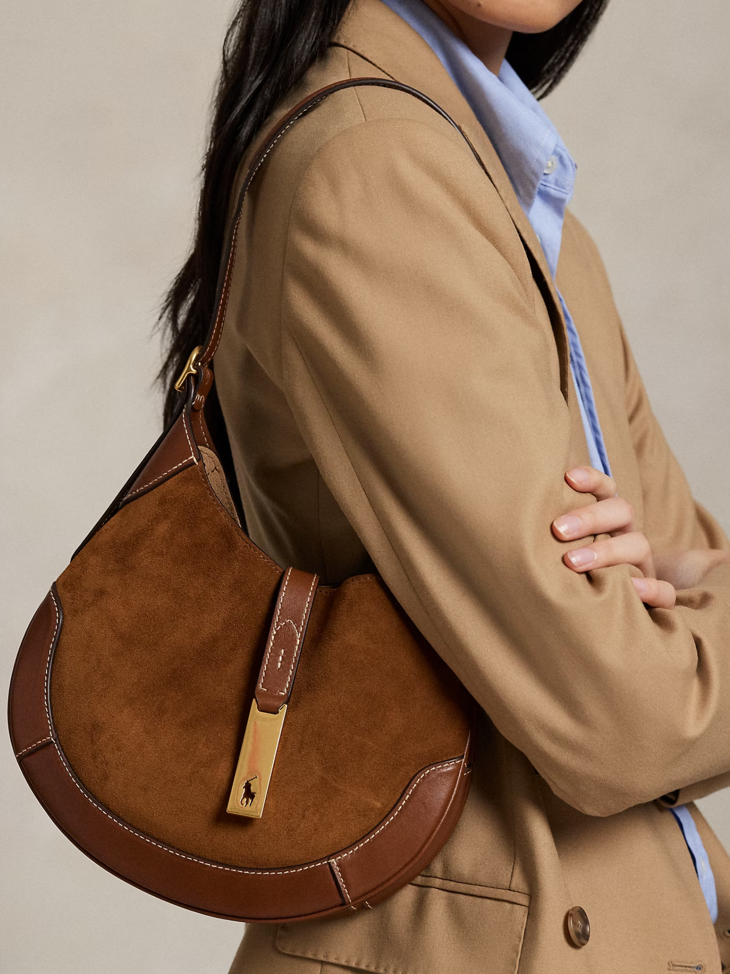 RALPH LAUREN WOMEN Polo ID Suede-Leather Small Shoulder Bag Cinnamon/Cuoio