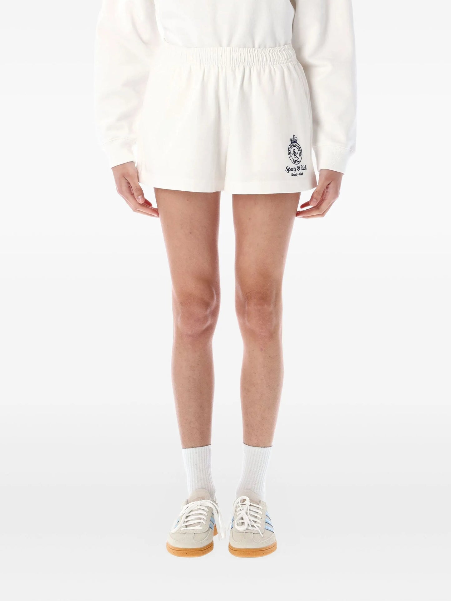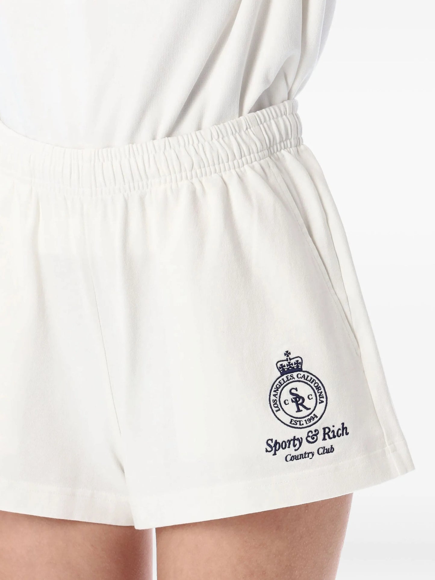 SPORTY & RICH WOMEN Crown Country Embroidered Cotton Disco Shorts White