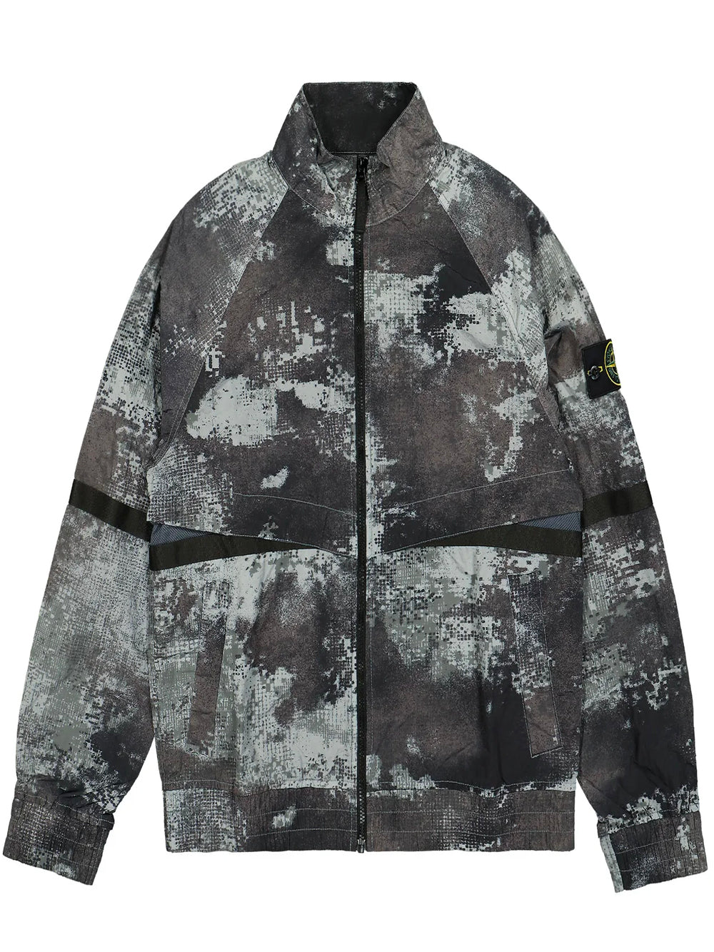 STONE ISLAND Jacke mit abstraktem Compass-Badge-Print aus Econyl-Nylon Grau Schwarz