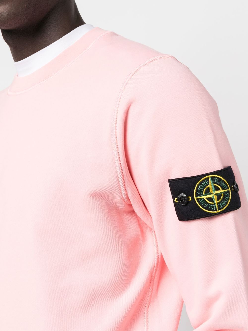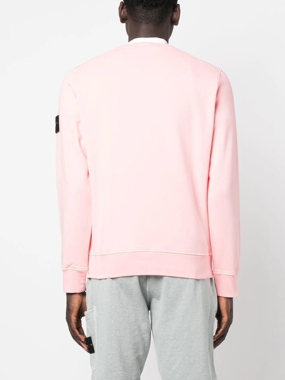 Sweatshirt mit Logo-Patch an den Ärmeln von STONE ISLAND in Rosa, Baumwolle, gerippte Details, Logo-Patch am Ärmel, Rundhalsausschnitt, lange Ärmel und gerader Saum.