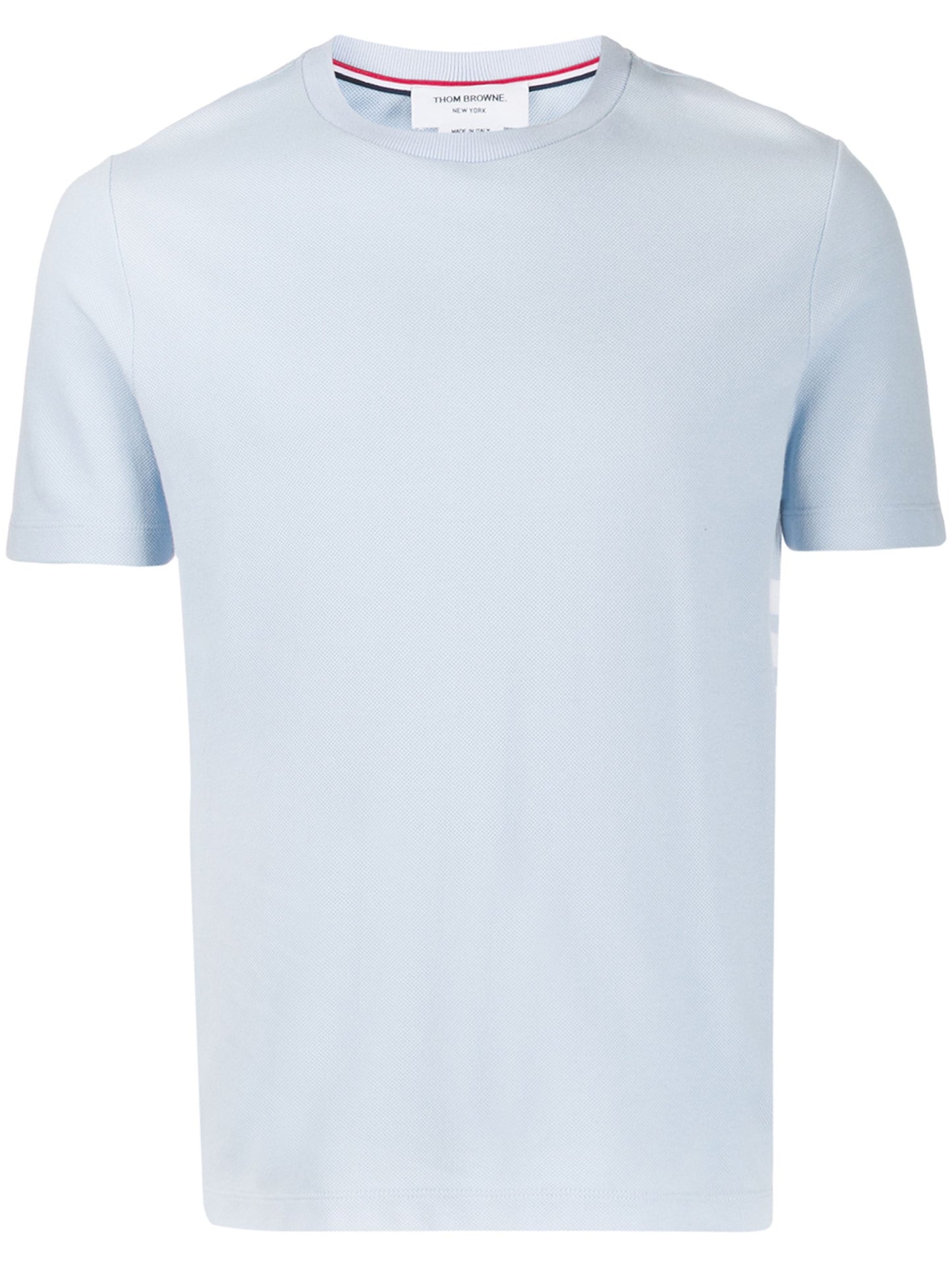 THOM BROWNE Kurzarm-Baumwoll-T-Shirt mit 4 Bar RWB-Streifen, Hellblau