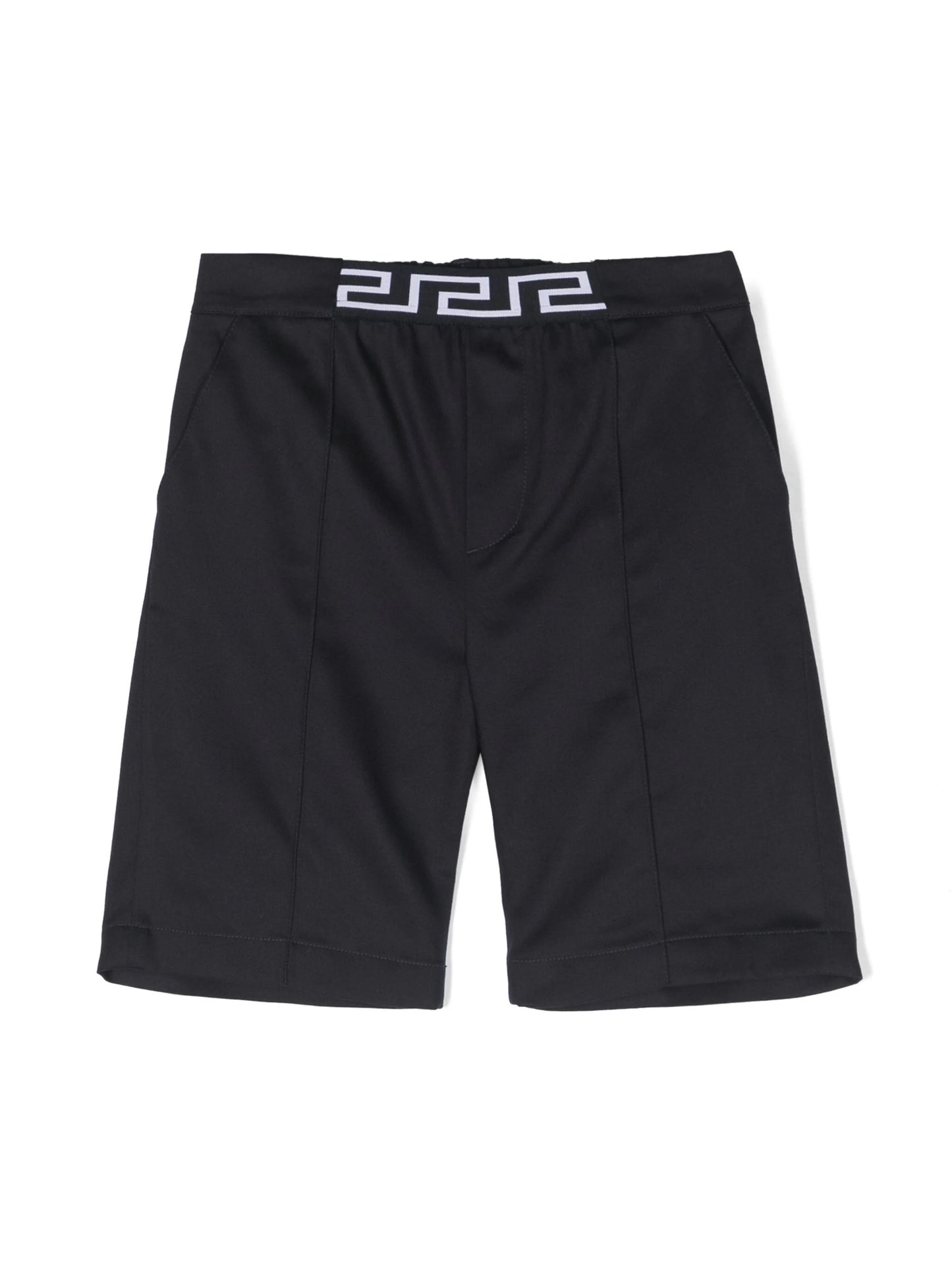 VERSACE KIDS Jungen Gabardine-Shorts mit Greca-Bund Marineblau