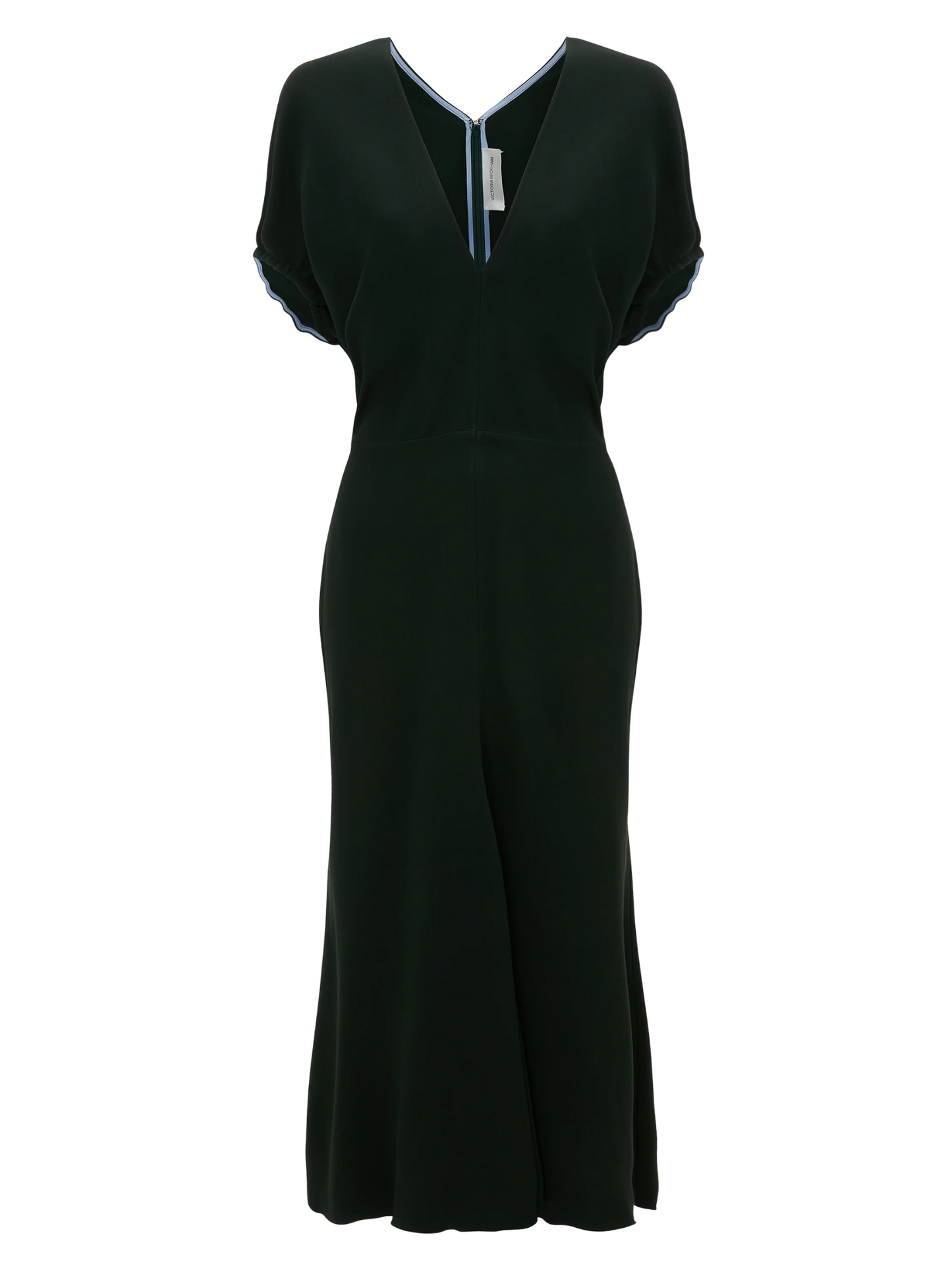 VICTORIA BECKHAM DAMEN Midikleid mit Blouson-Detail, dunkles Kiefernholz