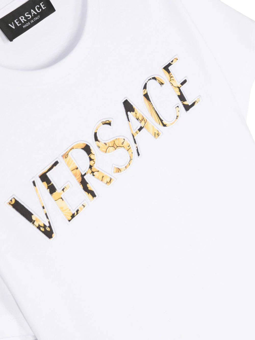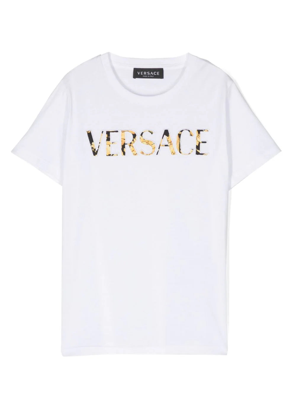VERSACE KIDS Boys Logo-Print Cotton T-Shirt White Yellow