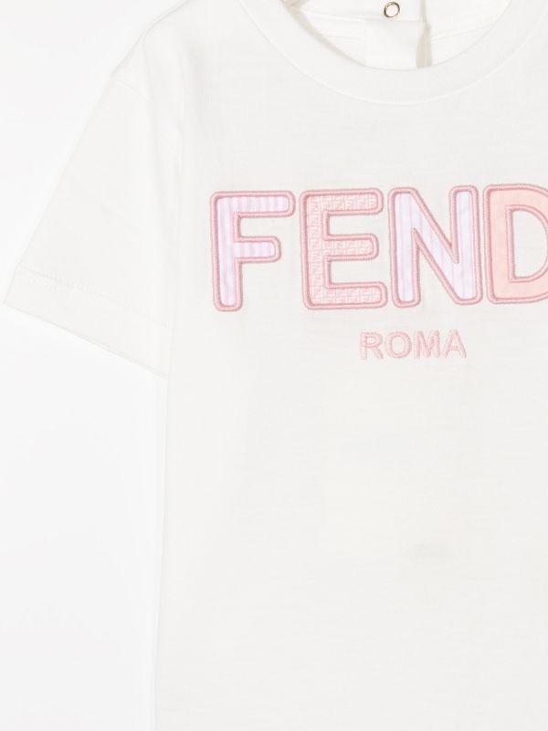 FENDI BABY Embroidered-logo T-shirt White/Pink