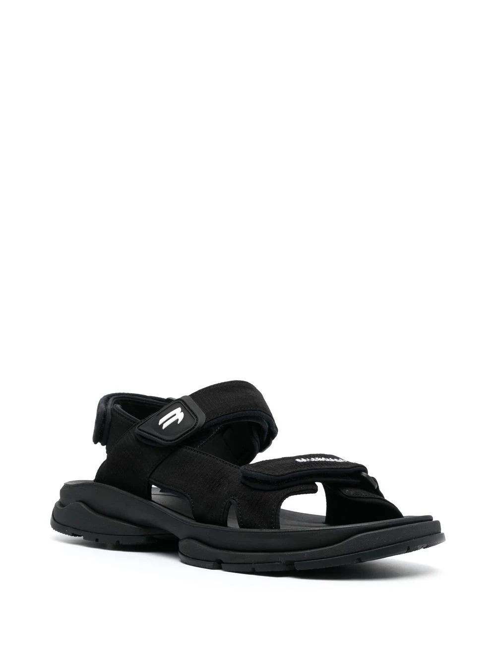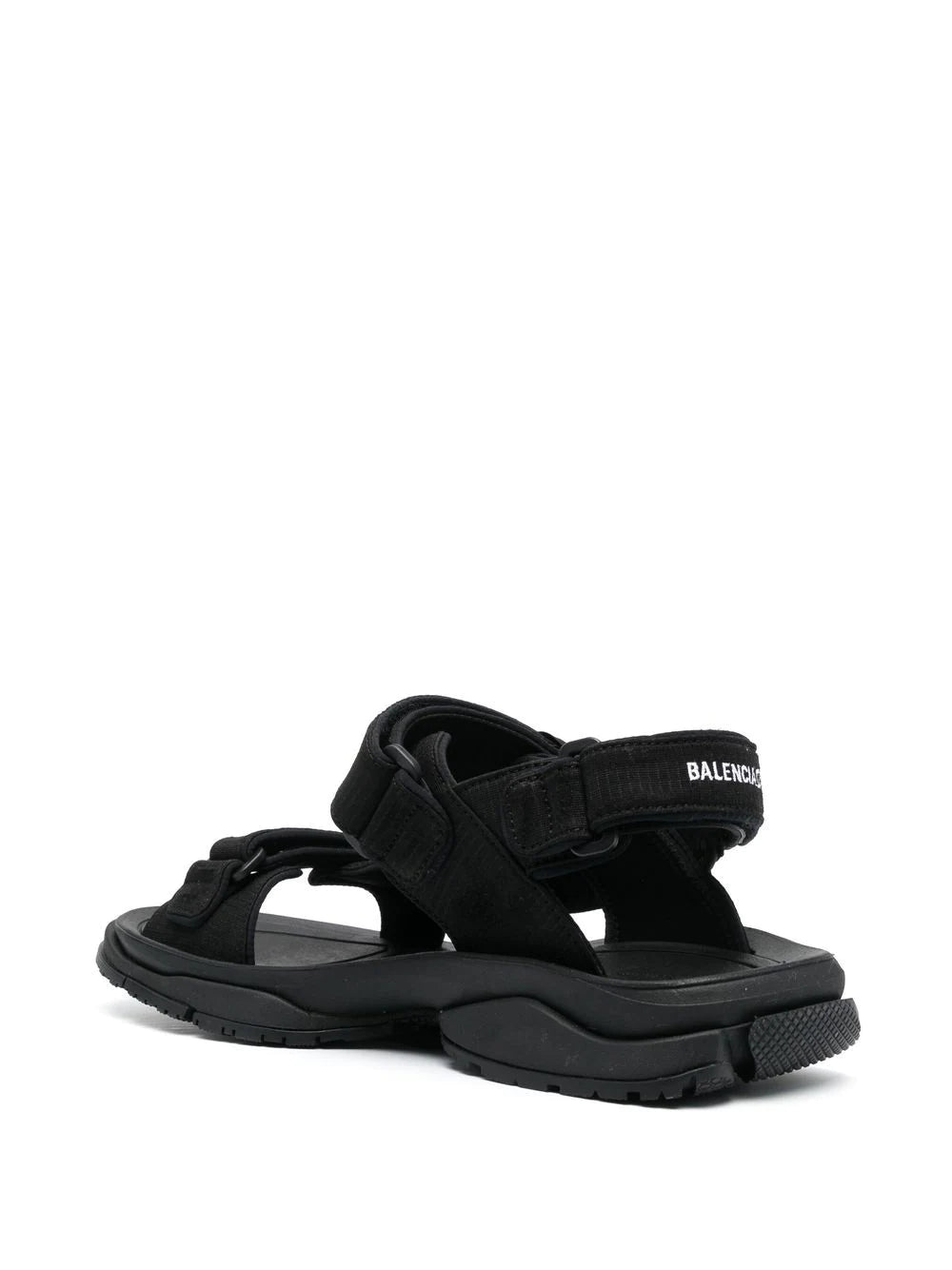 Tourist logo touch-strap sandals from BALENCIAGA featuring black, embroidered logo, logo print to the side, front touch-strap fastening, open toe, moulded footbed, elasticated slingback strap, rear touch-strap fastening and rubber sole.