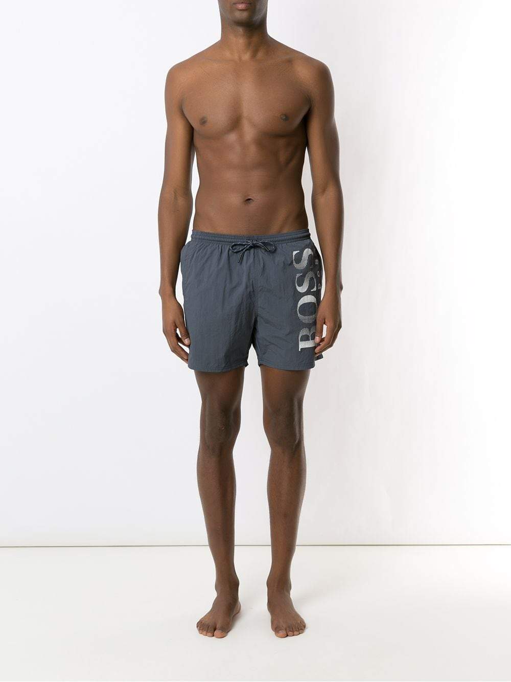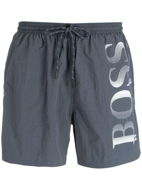 BOSS Logo Printed Octopus Swim Shorts Grey