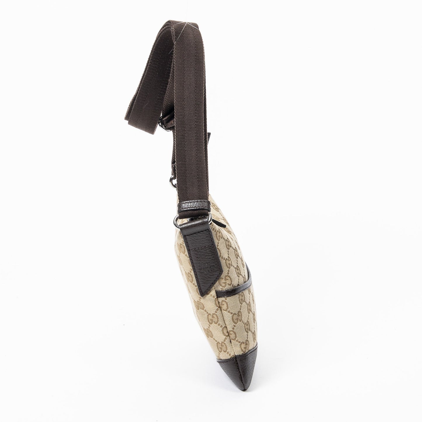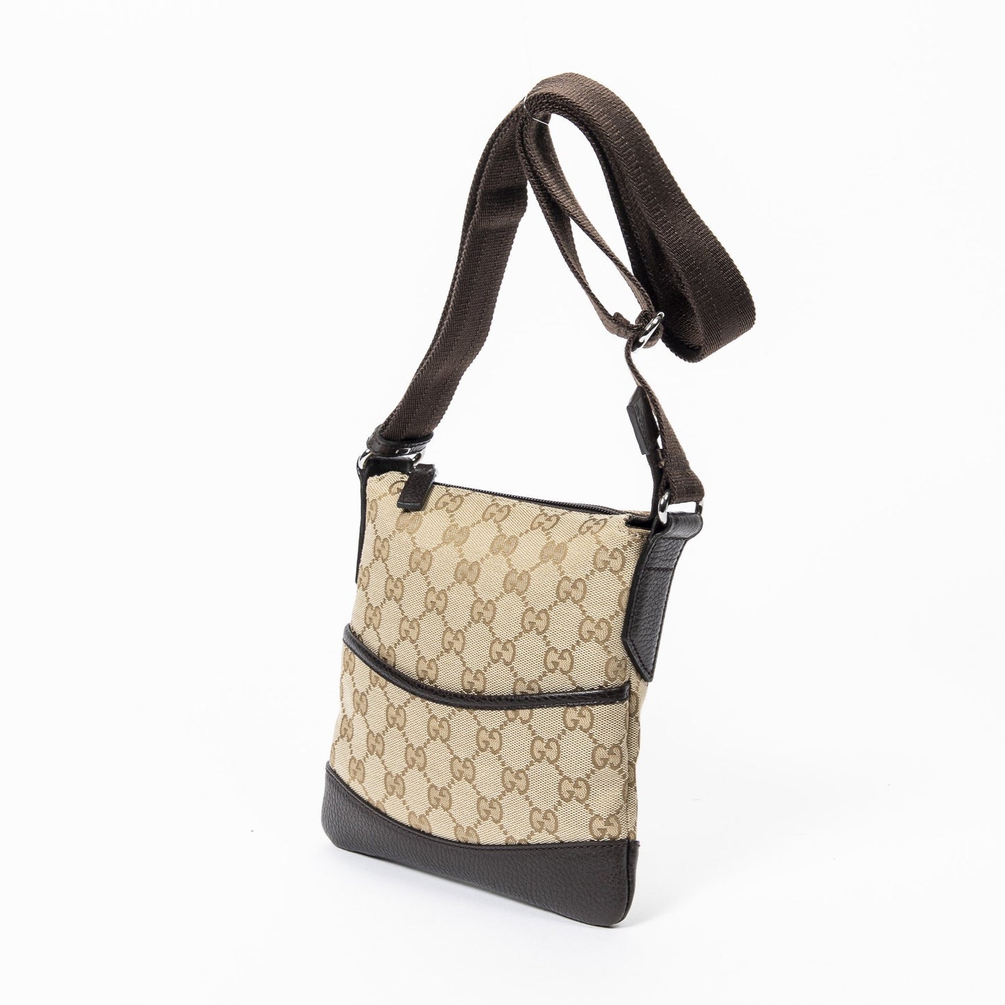 Brown and beige canvas and leather GG crossbody shoulder bag from Gucci Pre-Owned featuring an all-over GG pattern, an adjustable shoulder strap, a top zip fastening, a main internal compartment, an internal slip pocket and a front slip pocket. Please be mindful that this piece has led a previous life, and may tell its story through minor imperfection. Purchasing this item continues its narrative, so you can be confident that you’re making a POSITIVELY CONSCIOUS choice for the planet.