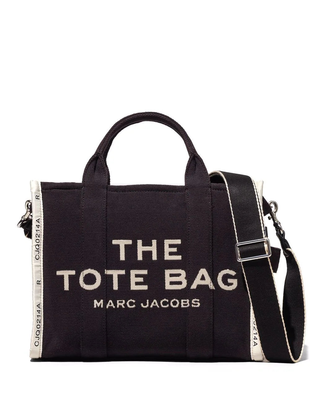 Designed with a jacquard construction, this The Jacquard Small Tote bag from Marc Jacobs is embellished with a logo detail on the front. The black and white accessory is topped with two handles and a detachable shoulder strap.