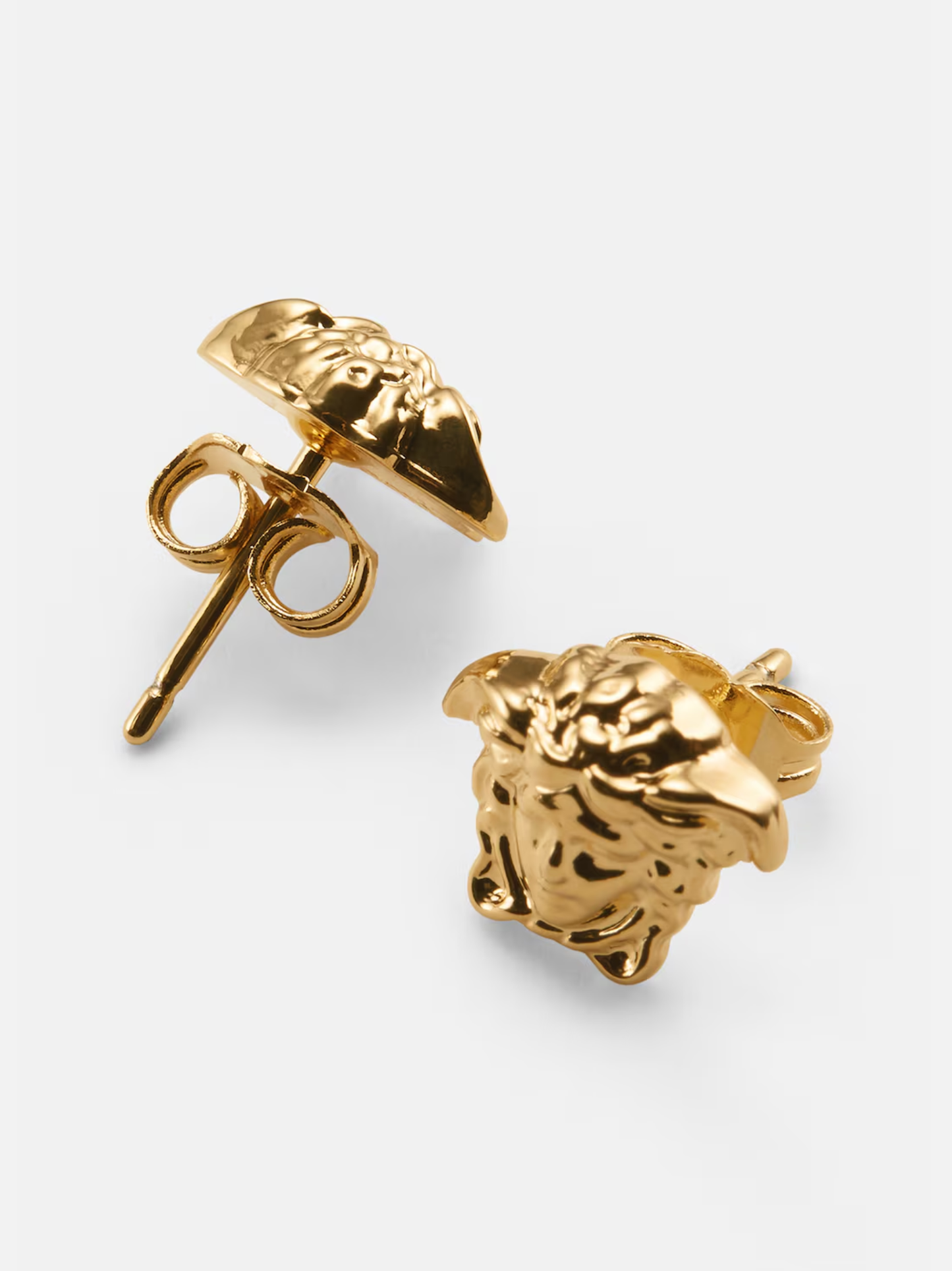 VERSACE WOMEN Medusa Stud Logo Engraved Earrings Gold