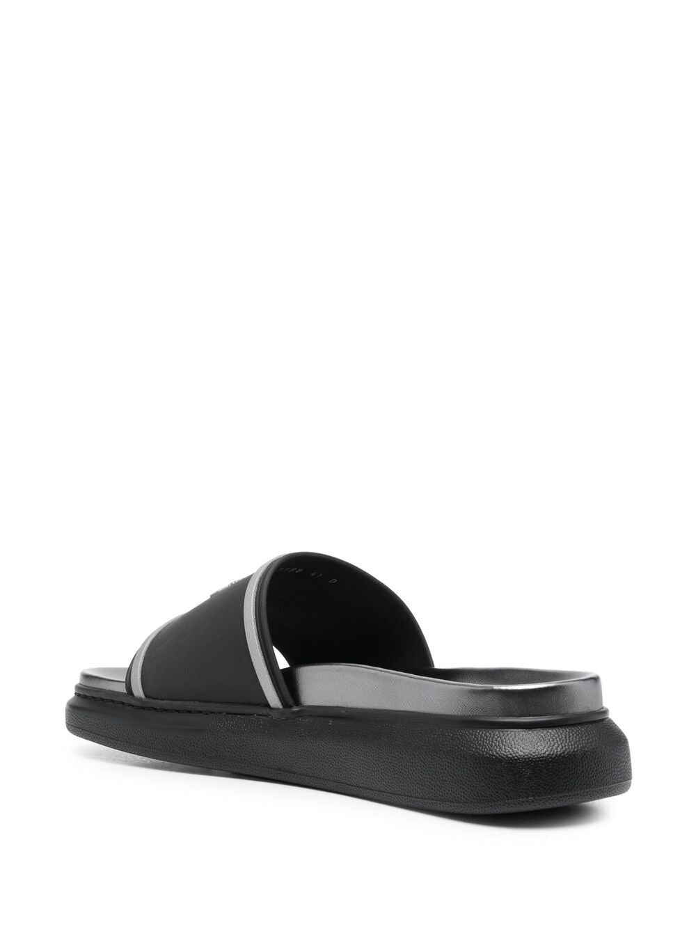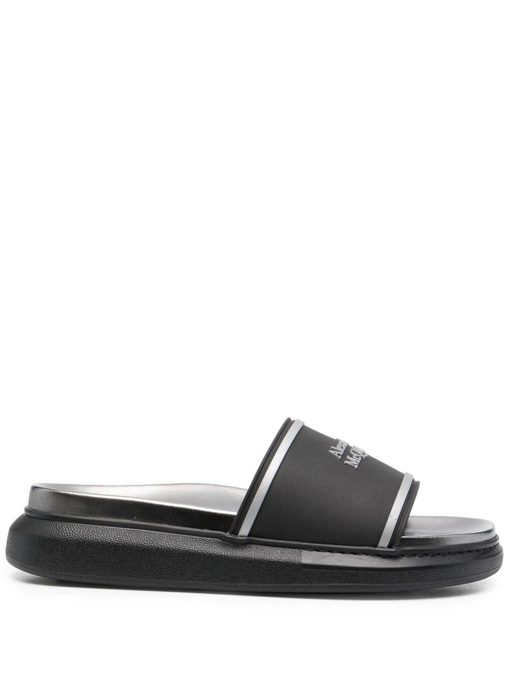 ALEXANDER MCQUEEN Logo-print flatform slides Black/Silver