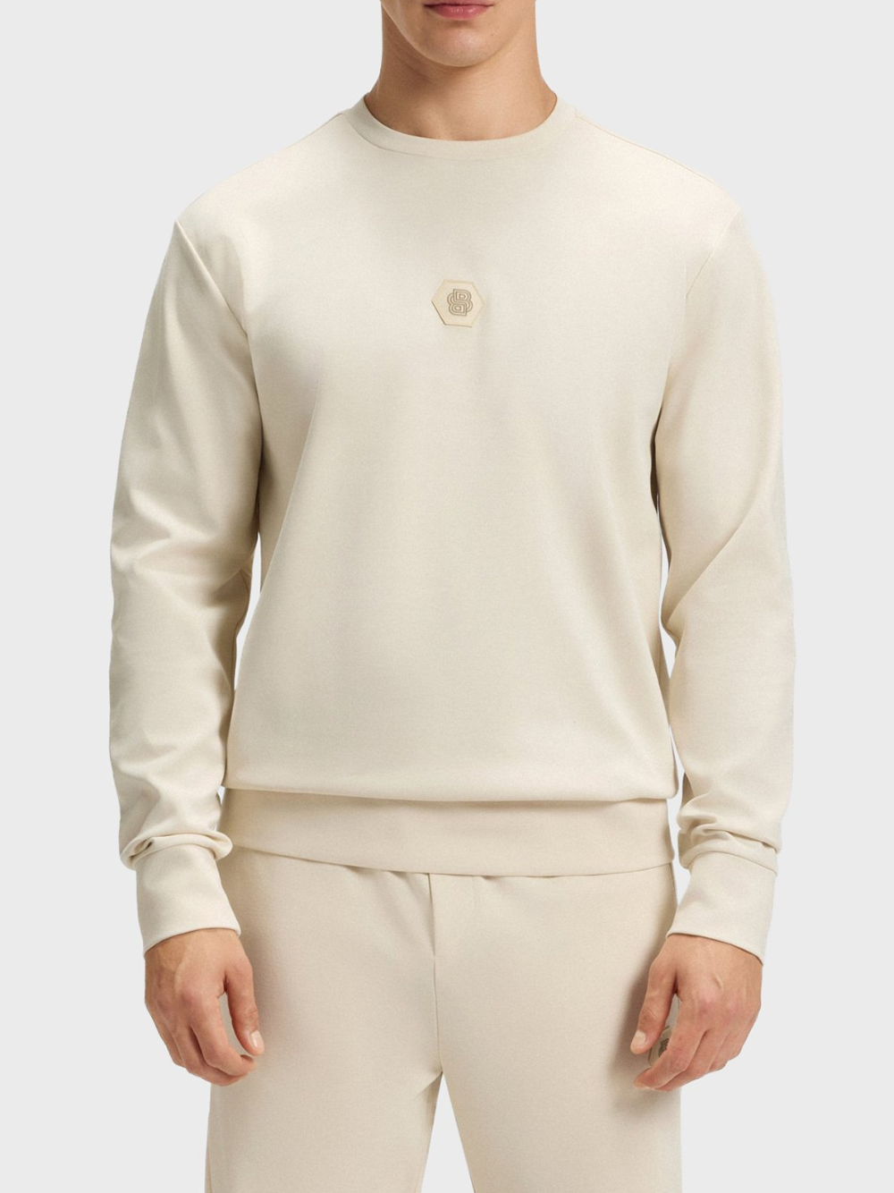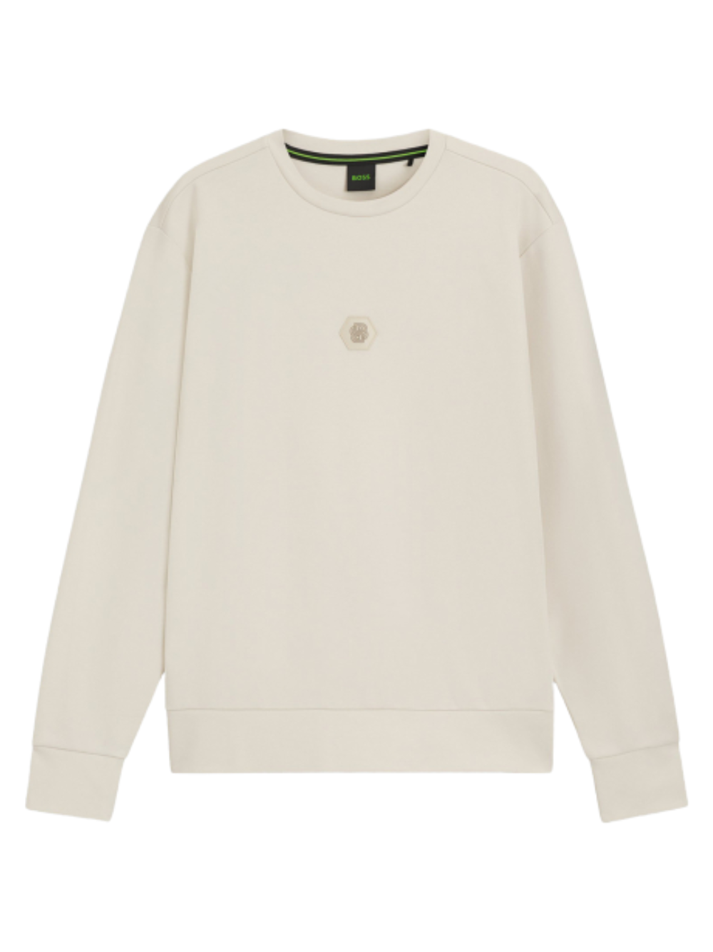 Ideal for everyday wear, this relaxed-fit BOSS Menswear sweatshirt features a hexagonal Double B monogram patch. Premium cotton-rich blend for ultimate comfort. This product contains at least 60% better raw materials. This piece is made with at least 60% cotton derived from regenerative agriculture. Regenerative agriculture prioritizes the preservation and restoration of natural environments, aiming to enhance biodiversity, maintain water quality, and improve soil health.