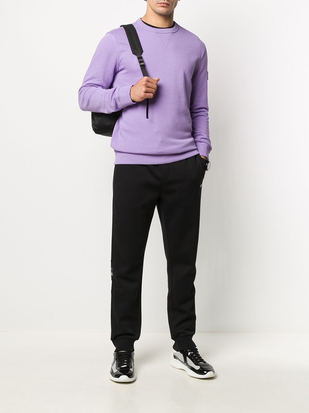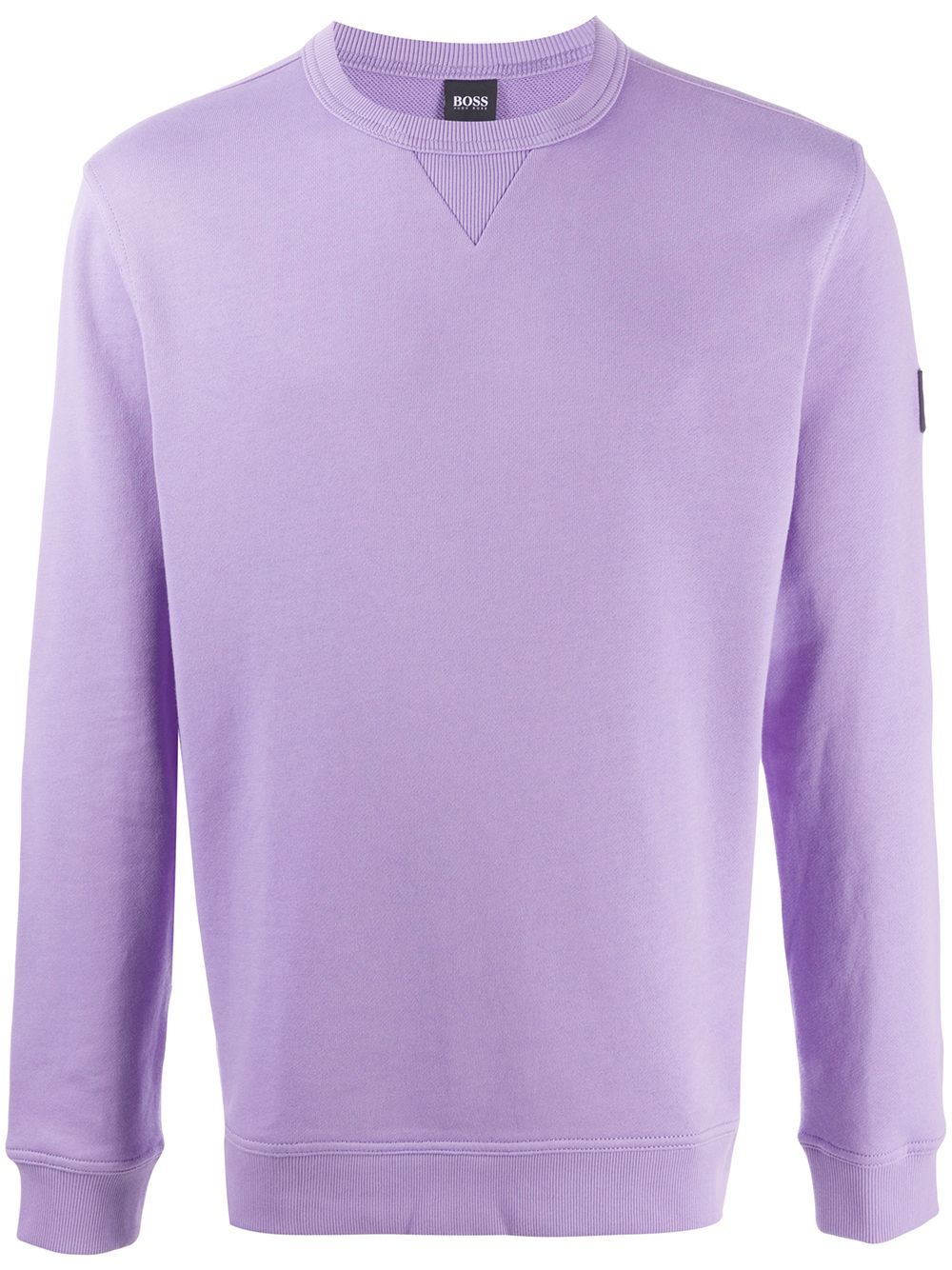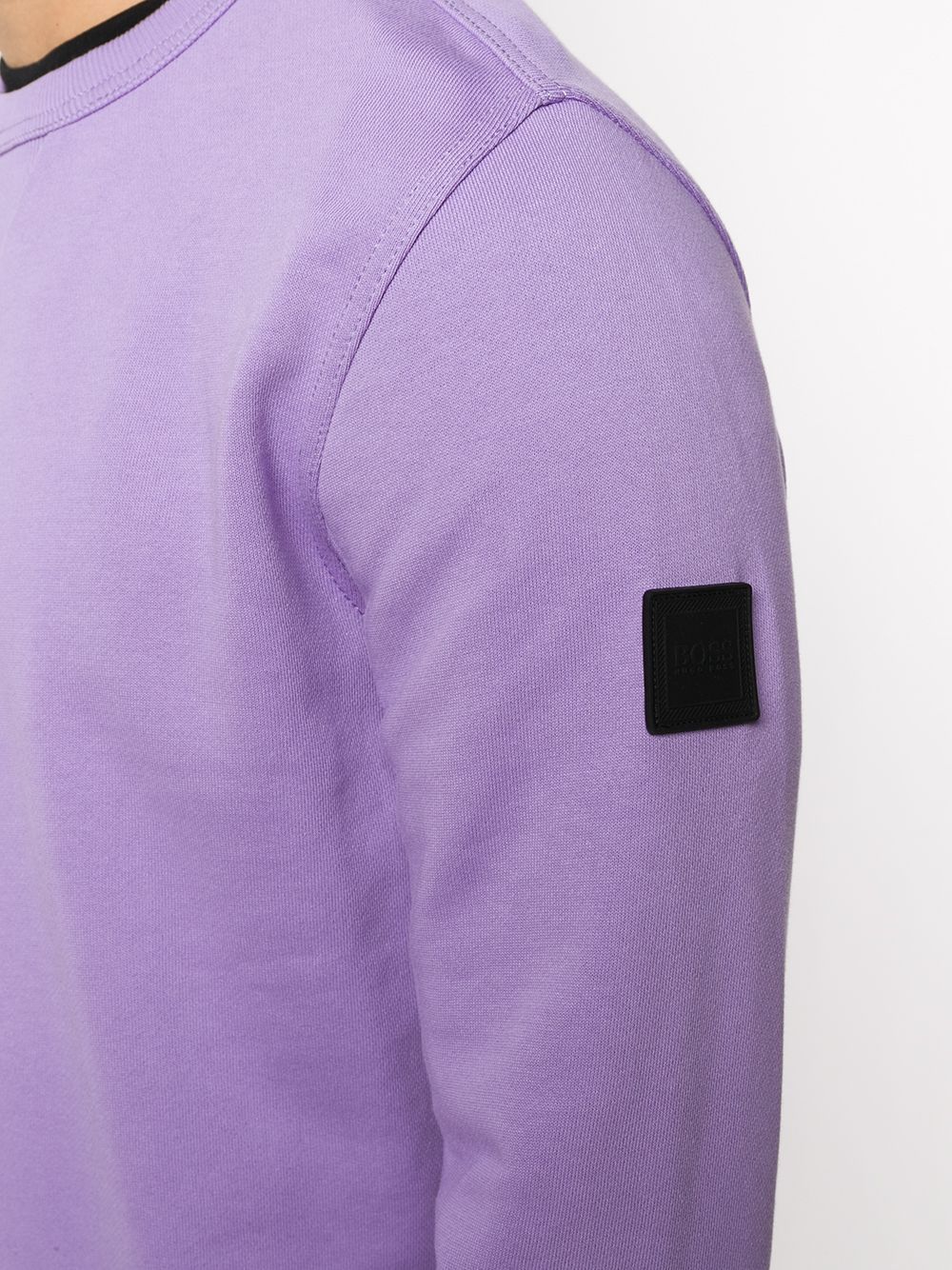 Purple cotton logo-patch sweatshirt from BOSS HUGO BOSS featuring a round neck, long sleeves and a logo to the arm.
