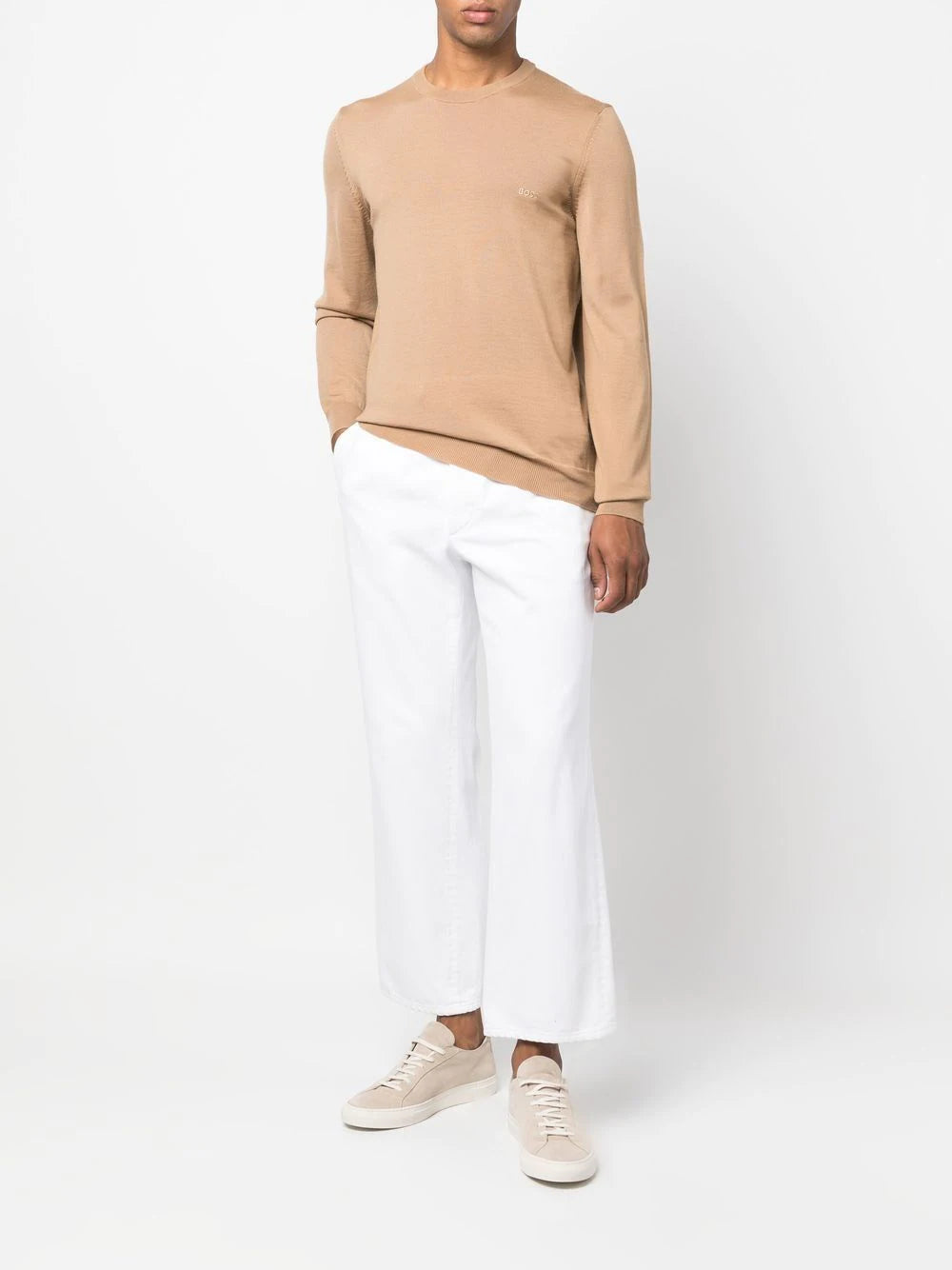 BOSS MEN Relaxed-fit Crewneck Virgin Wool Jumper Medium Beige