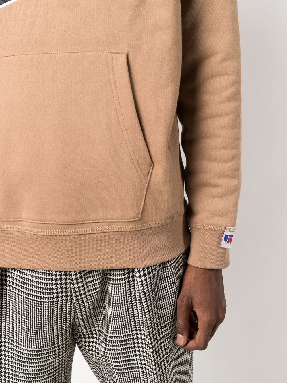 BOSS X RUSSELL ATHLETIC Logo-patch long-sleeved hoodie Brown