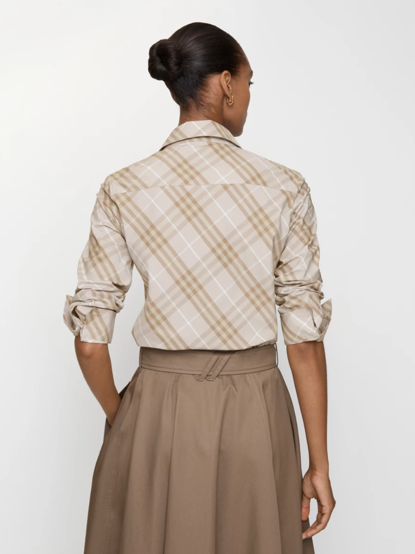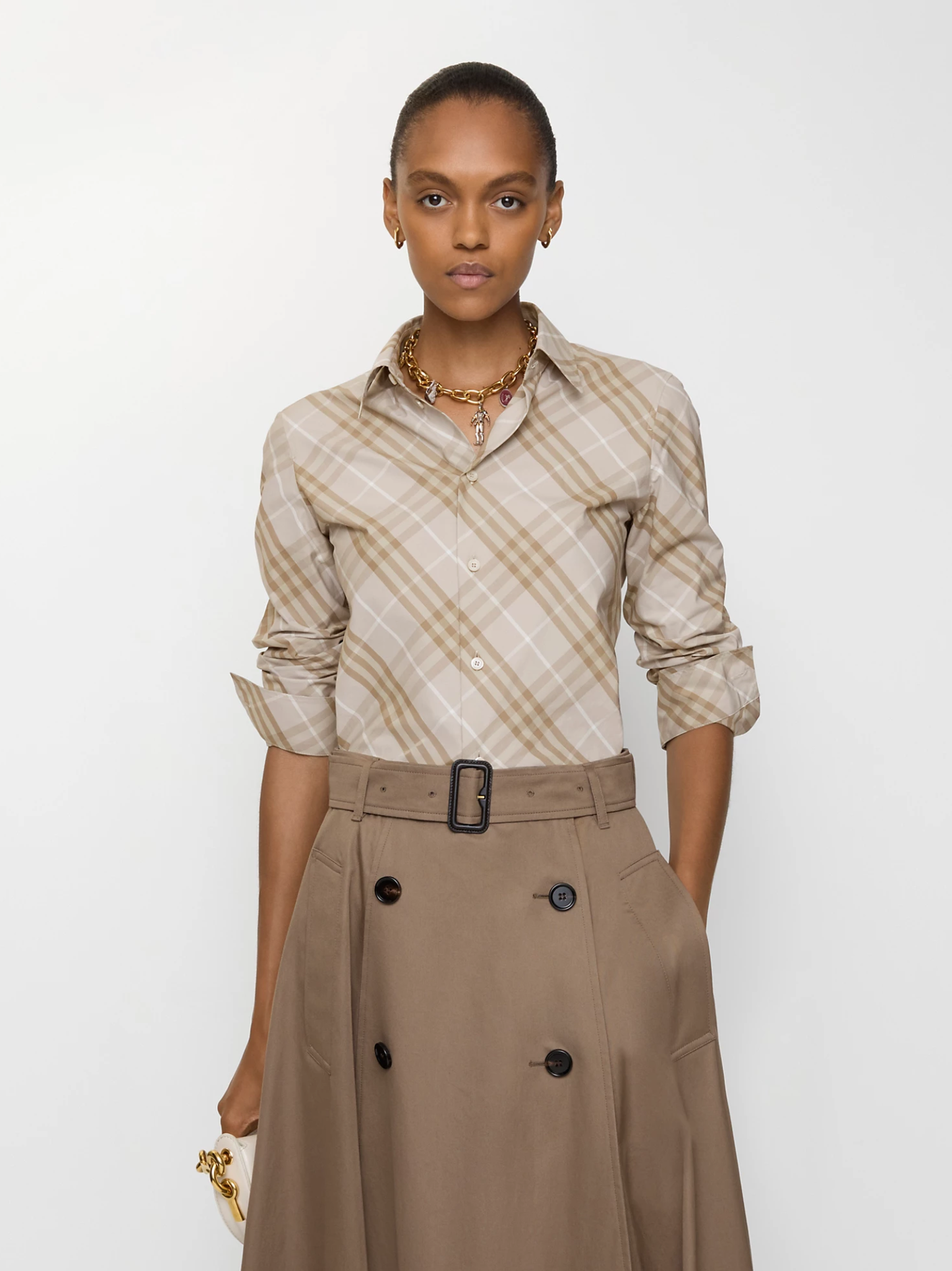 BURBERRY WOMEN Slim Fit Check Cotton Shirt Stone Grey