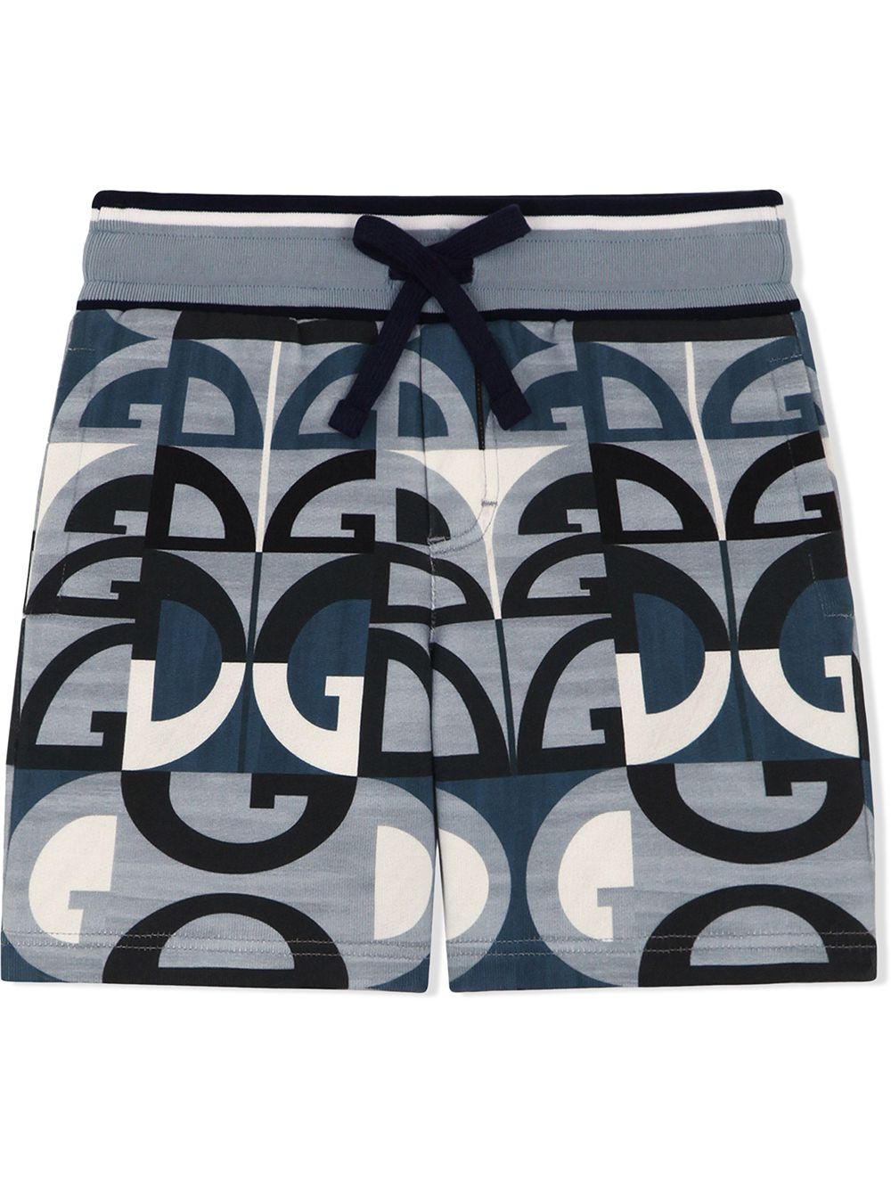 DOLCE & GABBANA KIDS Logo-print drawstring shorts Blue/White