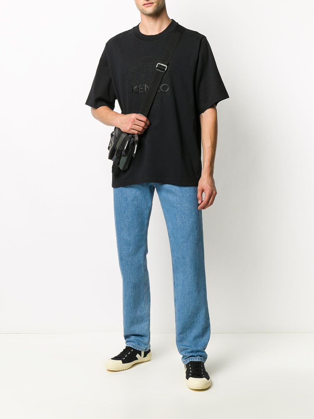 All black everything. This Kenzo t-shirt with tiger motif embroidery is a signature must-have from the brand. The loose airy fit and subtle black colour palette make this your next purchase.