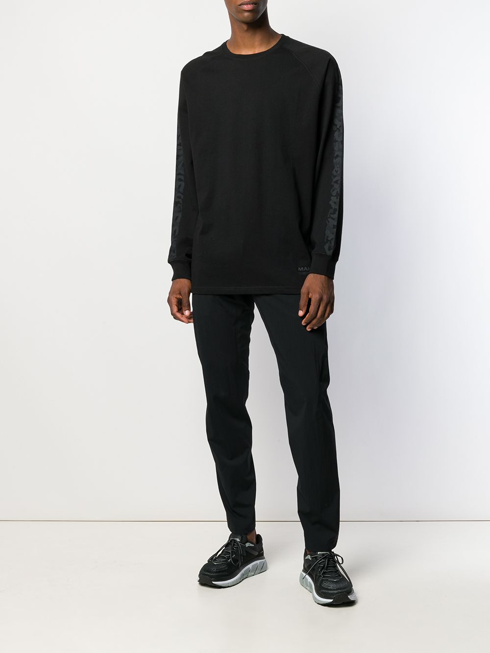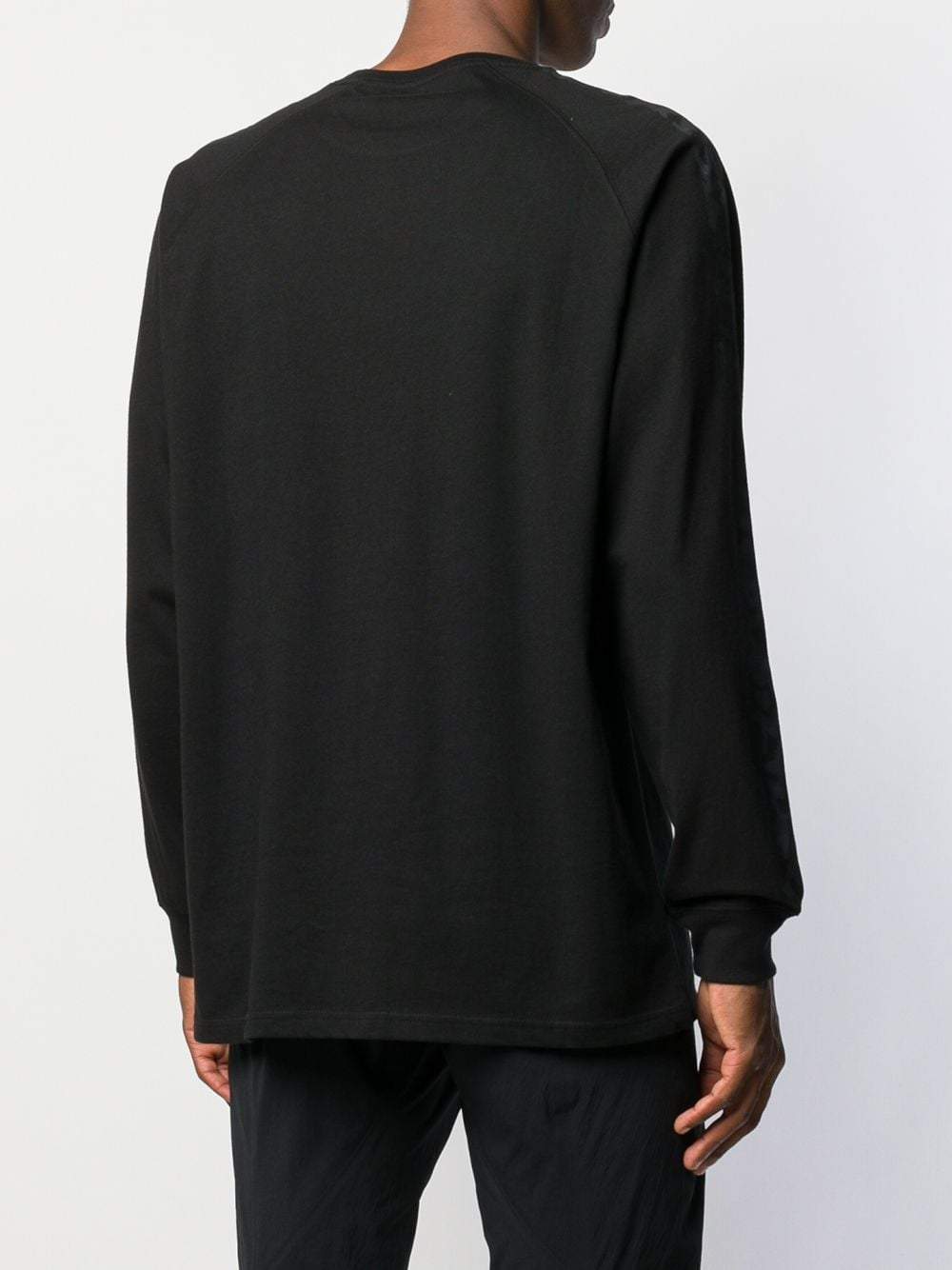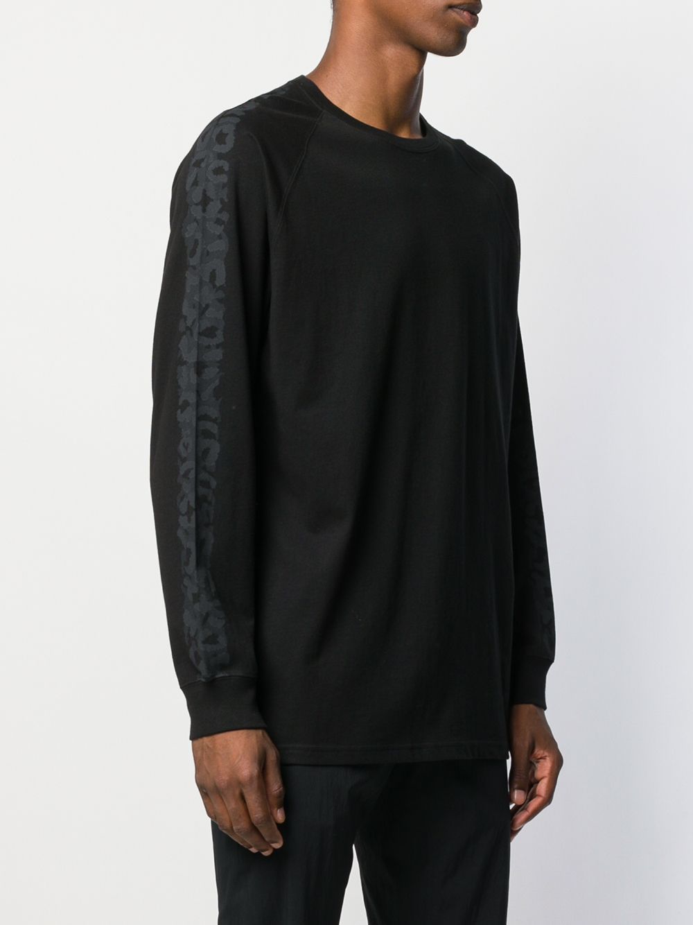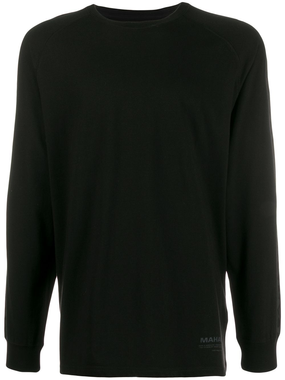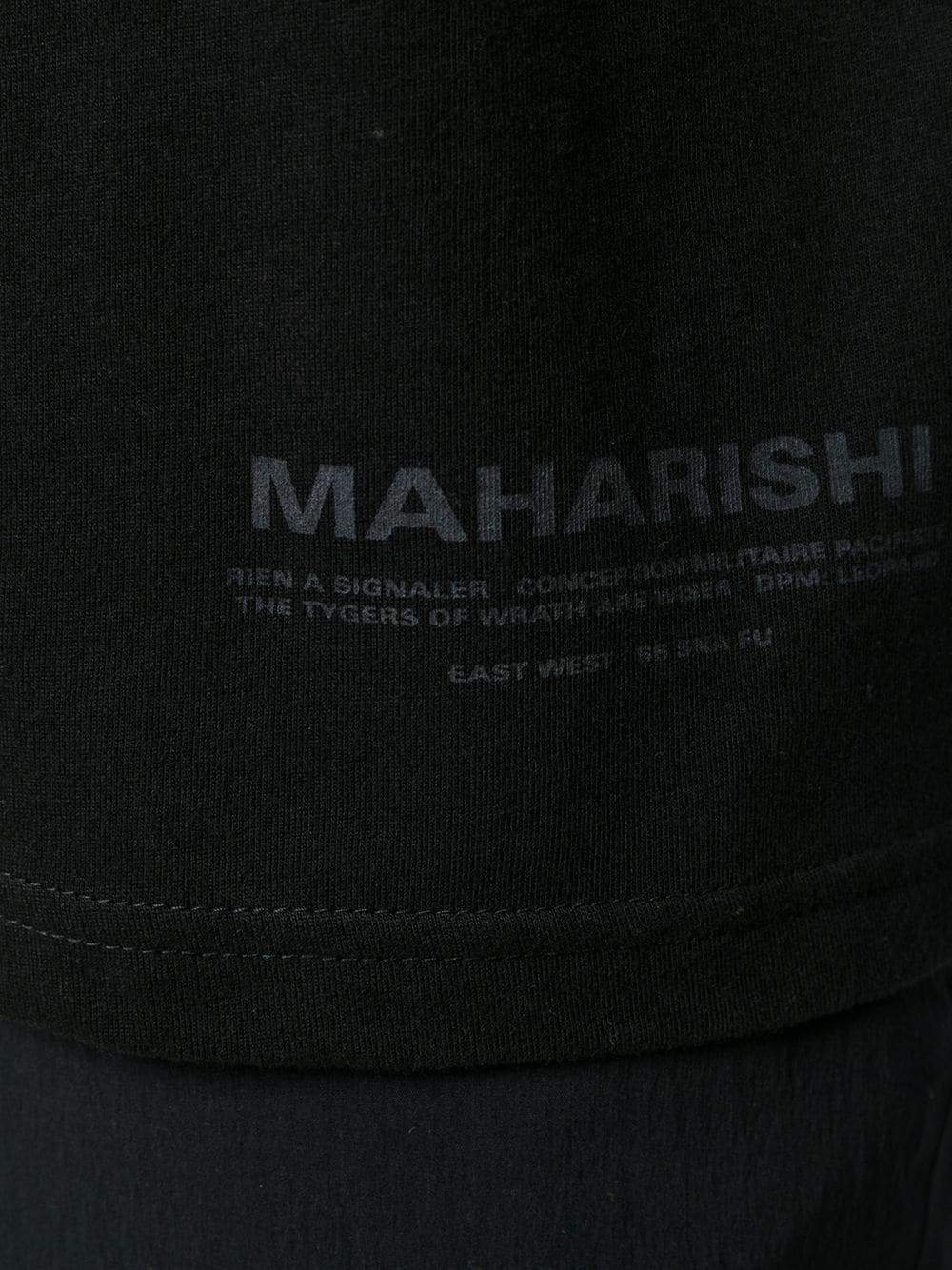 Night black cotton patterned T-Shirt from Maharishi featuring a ribbed round neck, long sleeves, ribbed cuffs and a straight hem.