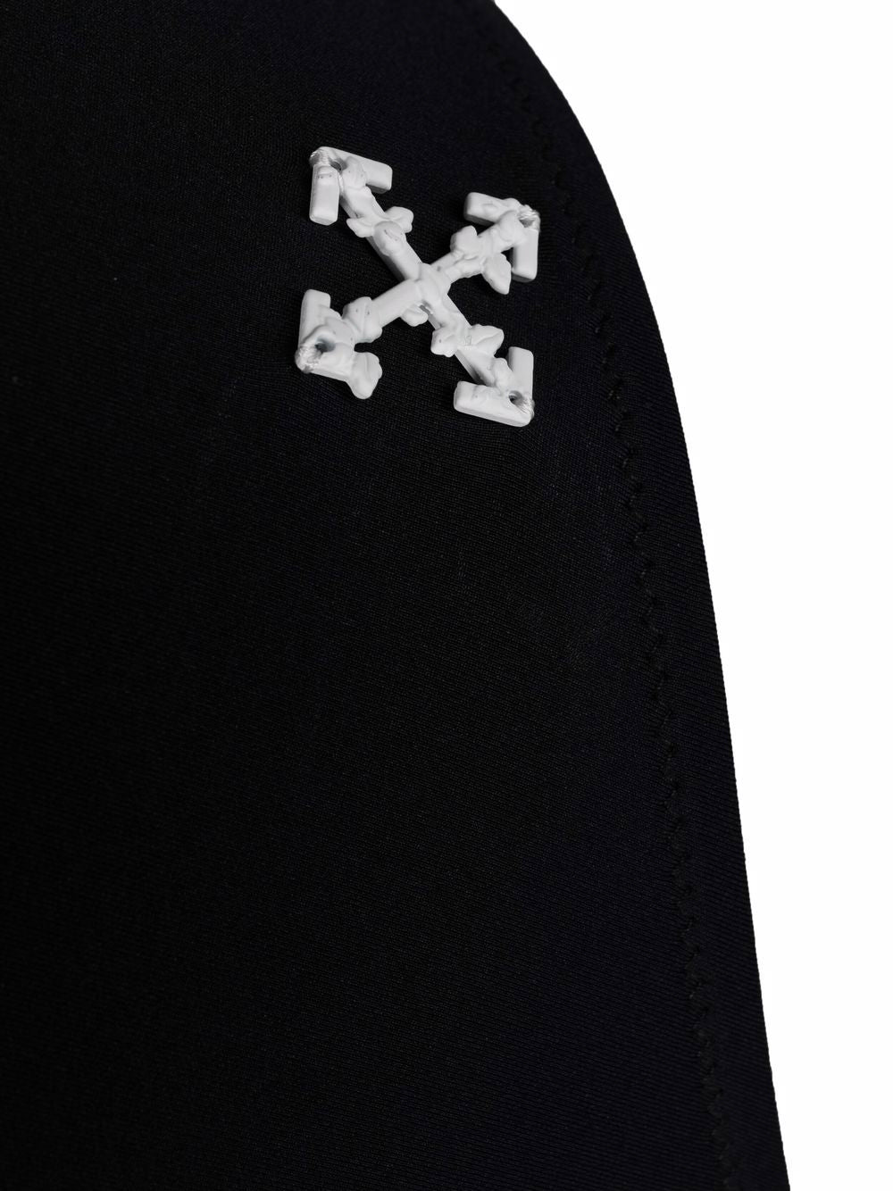 For SS22, Off-White gives swimwear a signature touch with their iconic Arrow plaque, as seen in this high-waist bikini. For an unmistakable finish, the piece is accented with a brand logo in a matching tone.