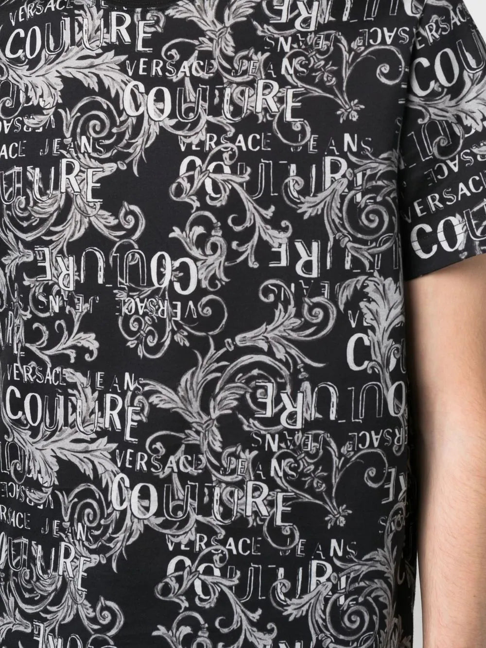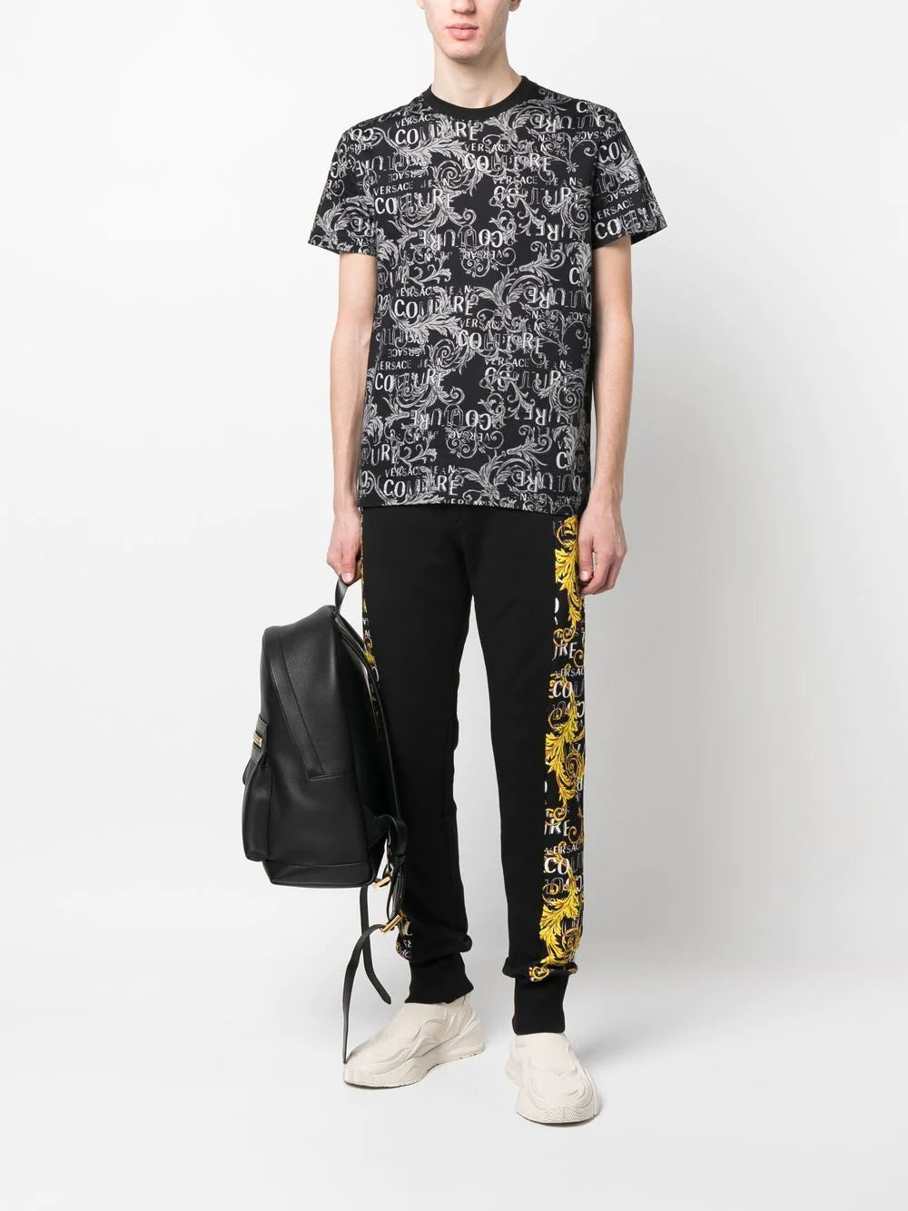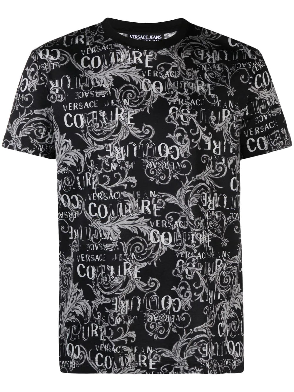 Versace Jeans Couture's signature maximalism is reflected in the design of this T-shirt. In contrasting black and white hues, a baroque pattern is combined with a repeated logo print.