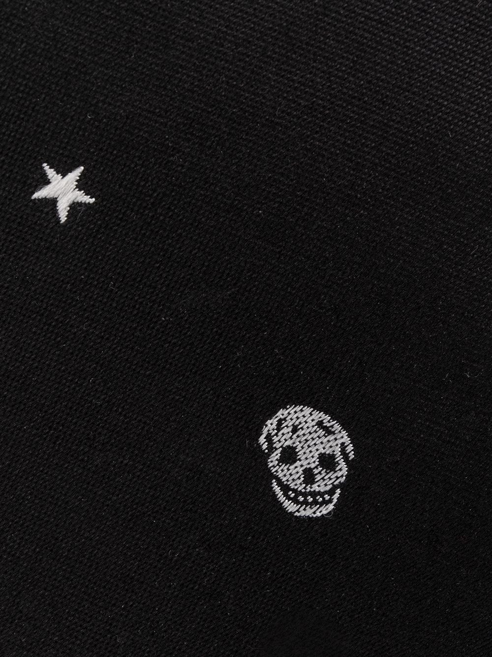 With Alexander McQueen, it's all about the skulls in your accessories edit, not the skeletons in your closet. Update your collection with this skull and star-embroidered black silk tie.